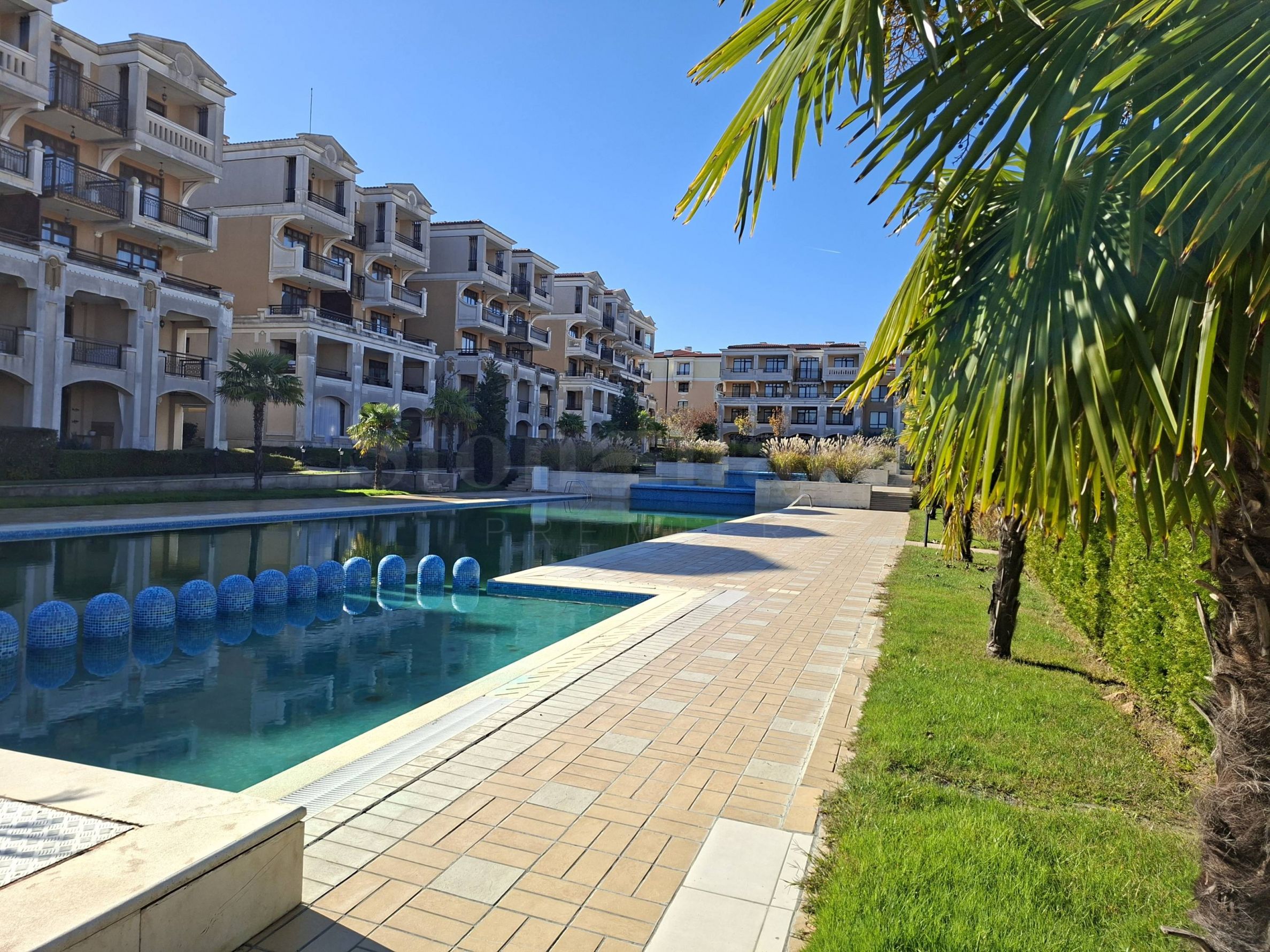 Квартира расположена на 2 этаже, полностью меблирована и оборудована, открывается приятный вид на бассейн и внутренний двор комплекса, готова к заселению. Есть возможность перепланировки в трехкомнатную квартиру.