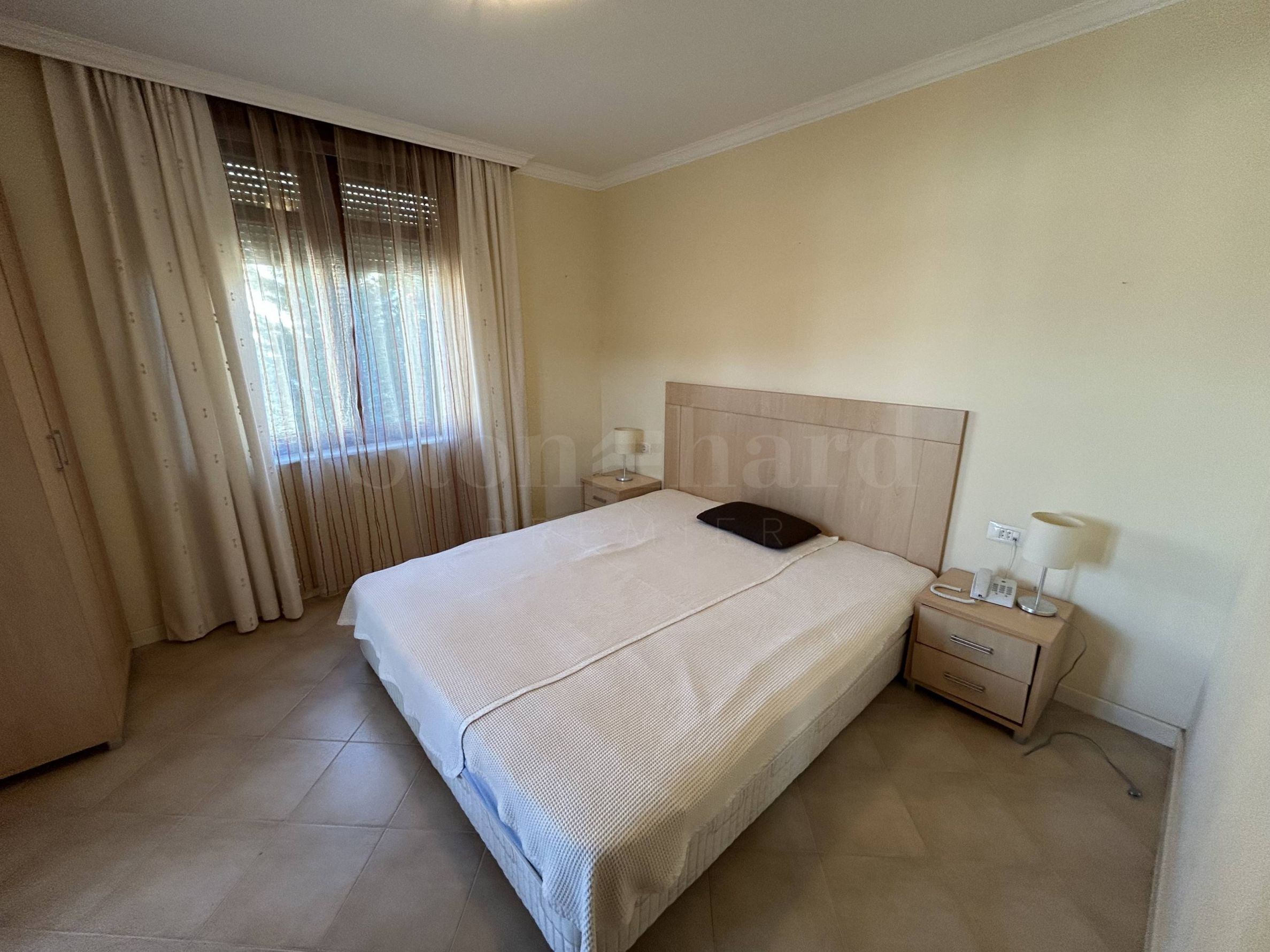 Квартира расположена на среднем этаже, общей площадью 89 м2., окна выходят во внутренний двор комплекса. Квартира обставлена новой меблировкую и техникой, сохраняет ощущение света, уюта и морского колорита. Подходит как для отдыха, так и для круглогодичного проживания.