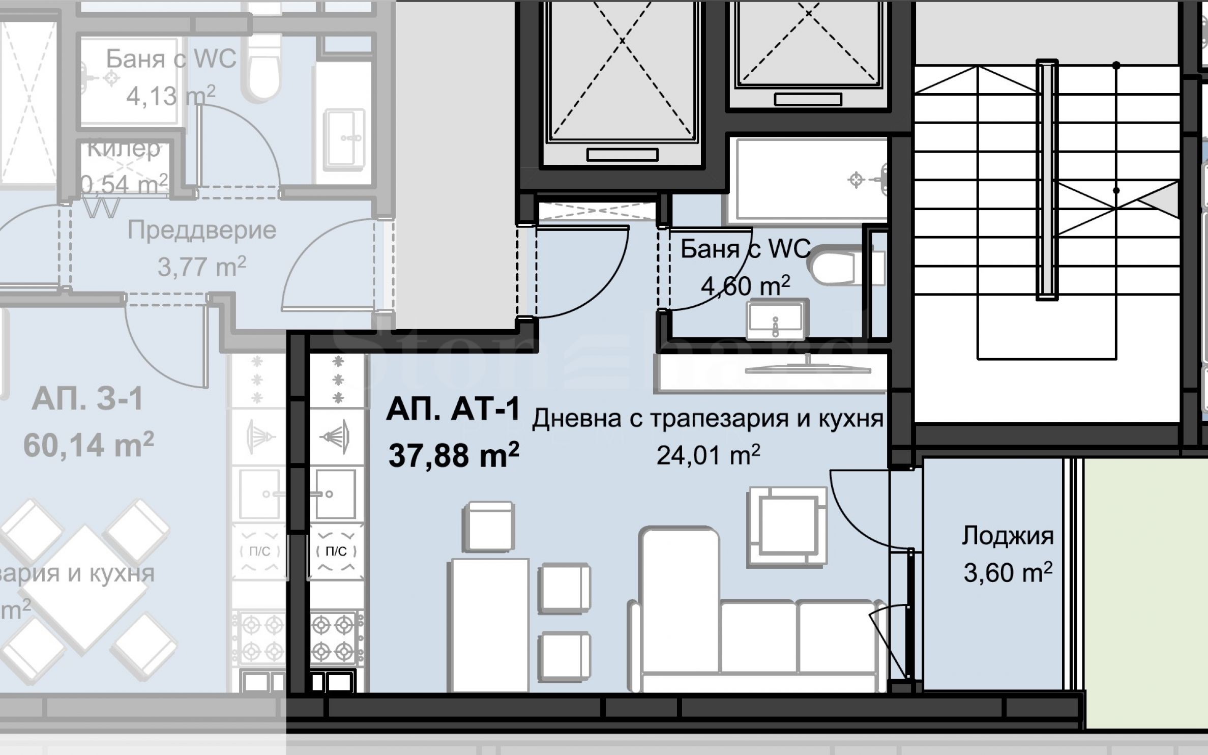 Представляем студию в инновационном и масштабном жилом проекте, расположенном в одном из самых востребованных и быстроразвивающихся районов Пловдива — квартале «Христо Смирненски». Расположение обеспечивает отличную транспортную доступность — в пешей доступности от Гребной базы, торгового центра «Молл Пловдив», крупных больниц, школ, детских садов и остановок общественного транспорта. В то же время, здесь царит тишина, безопасность и ощущение отдельного, спокойного мира в городе.