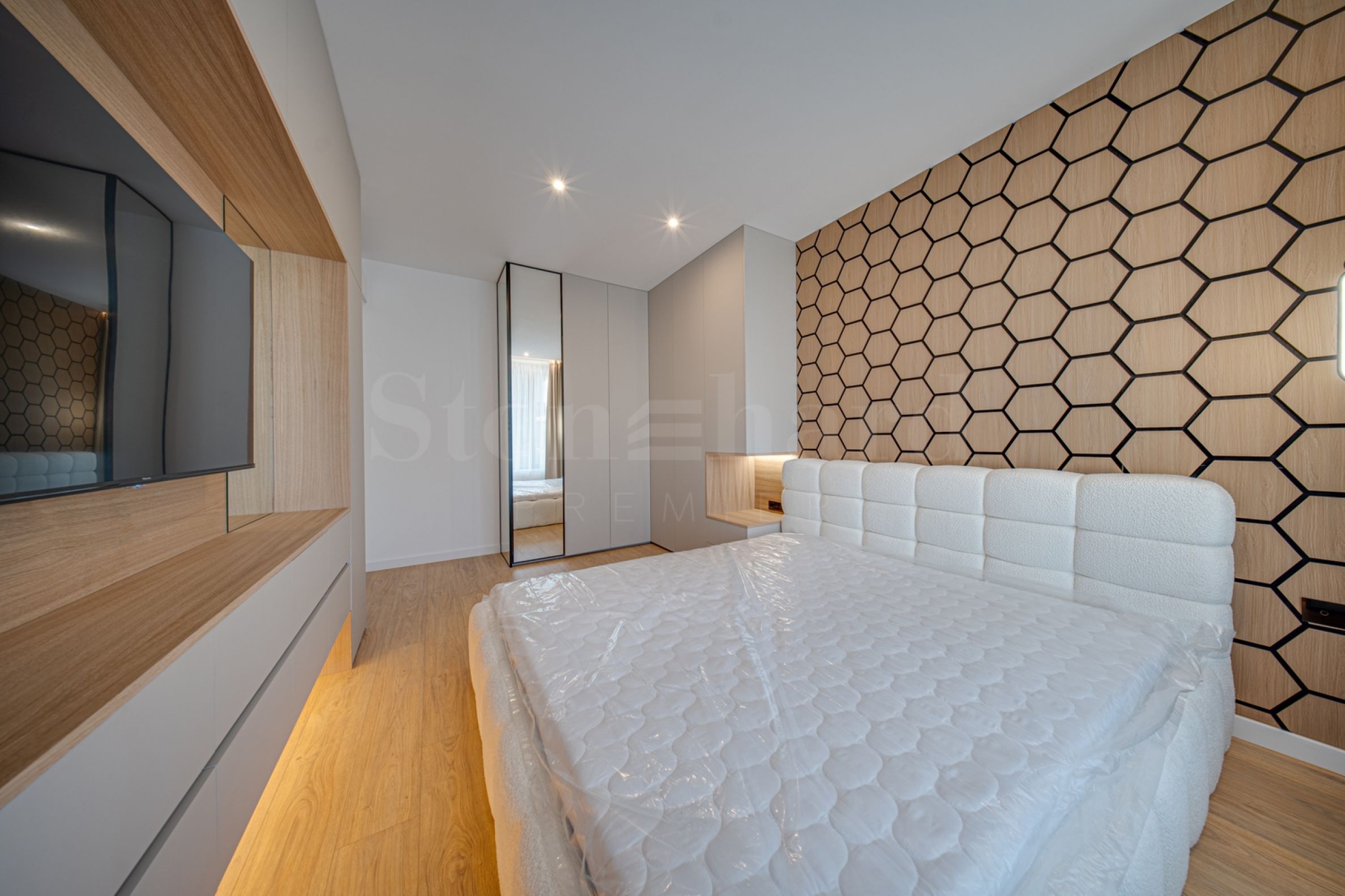 Квартира площадью 130 кв. м расположена на 3-м этаже. Квартира светлая, отличается современным дизайном и интерьером с чистыми линиями. Большие окна создают ощущение простора и обеспечивают обилие света, а качественные материалы и изысканная меблировку придают уют и элегантность. Отопление осуществляется с помощью газового котла, а для комфорта в летние месяцы дополнительно установлены кондиционеры.