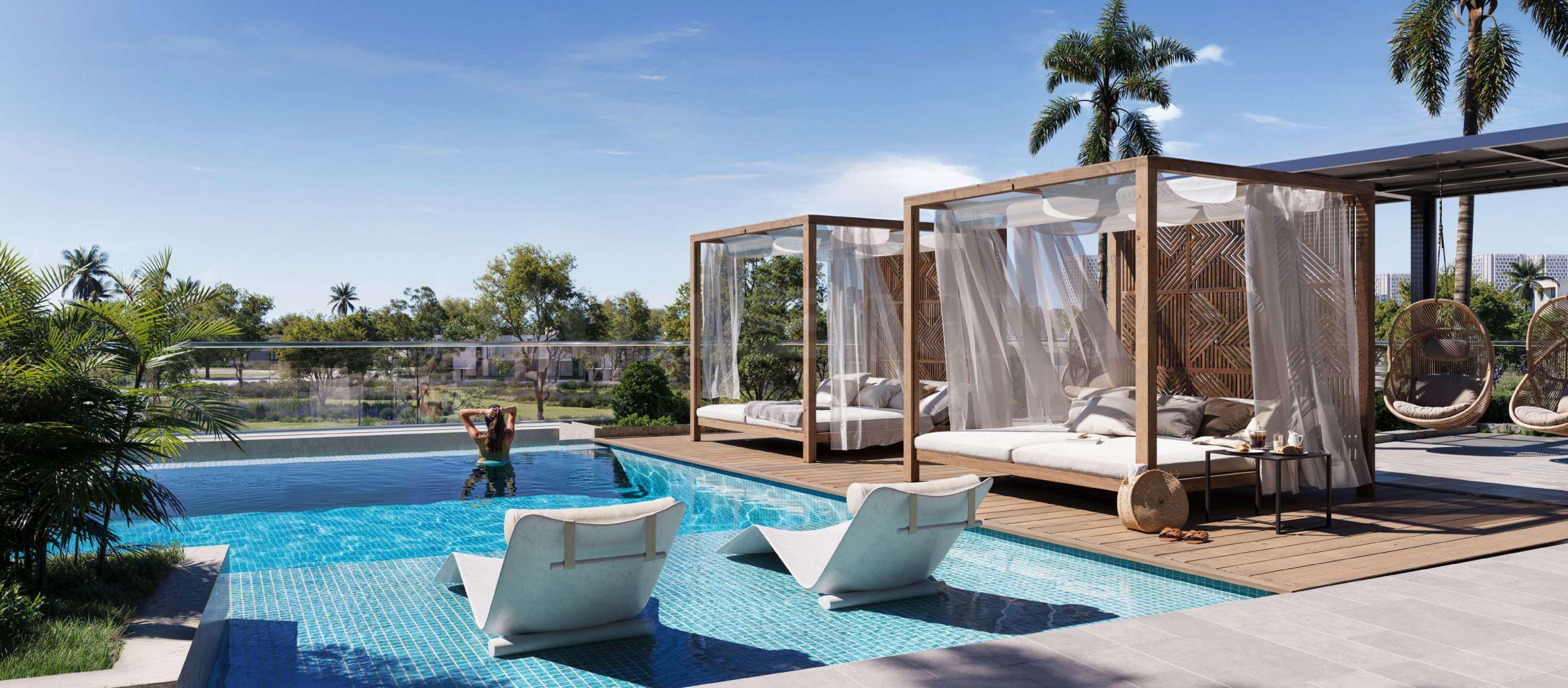 Жилой комплекс Inara by Imtiaz, занимающий 11 этажей, отличается инновационной архитектурой с изогнутыми линиями, образующими U-образную форму, что обеспечивает прекрасные виды и благоприятное расположение всех квартир. Каждая деталь тщательно подобрана, чтобы поднять ощущение комфорта на новый уровень, сочетая современную элегантность с теплотой и спокойствием. Здание встречает своих жителей просторным лобби и ресепшеном, обставленными стильной и удобной меблировкую, создавая уют и комфорт с первого шага. На открытом воздухе расположены бассейны для взрослых и детей, а также зоны отдыха. Подиумный уровень богато озеленен, здесь есть уголок для чтения, удобные качели для отдыха и зона барбекю, призванные способствовать спокойствию и расслаблению. Для любителей активного образа жизни предусмотрены полностью оборудованный тренажерный зал и беговая дорожка на открытом воздухе, а для отдыха — кинотеатр под открытым небом, а также зона отдыха для различных мероприятий, адаптированных к потребностям и предпочтениям жителей.