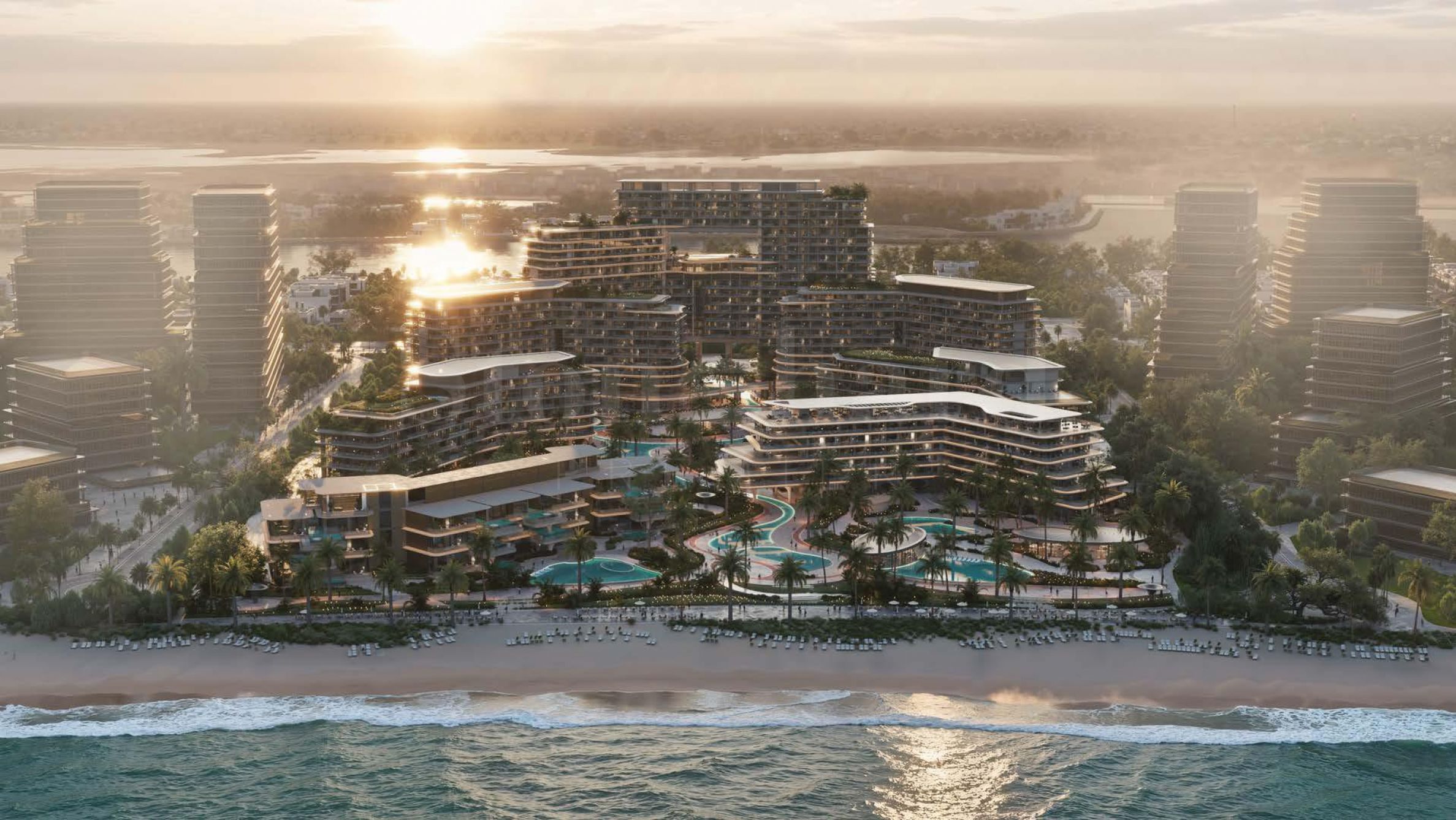 Основная концепция комплекса вдохновлена идеей идеального баланса между морем, архитектурой и природой. Пространство спроектировано таким образом, чтобы объединить береговую линию и прекрасные пляжи с элегантными жилыми зонами и богато благоустроенными садами, создавая гармоничную среду с ощущением настоящего оазиса. Жители смогут пользоваться частным пляжем с золотым песком и кристально чистой водой, где каждый день начинается с солнца и заканчивается под ритм спокойных волн. Зеленые зоны являются неотъемлемой частью как концепции, так и экосистемы комплекса — они создают тенистые и прохладные уголки для отдыха, детских игр, прогулок и пробежек, с отдельными аллеями, плавно огибающими здания.