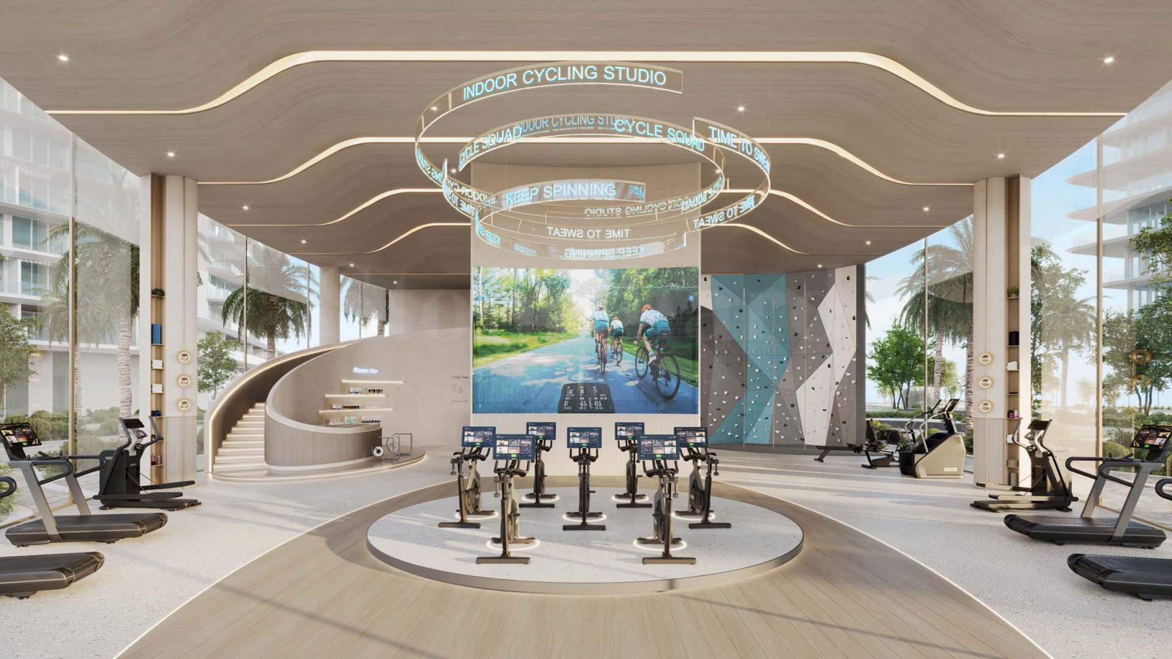 Первый этаж здания посвящен активному образу жизни и восстановлению. Здесь расположен современный тренажерный зал с баром, студия пилатеса и зона отдыха с сауной, душевой кабиной и лавандовой комнатой, предназначенная для полного восстановления после тренировок. Для любителей активного отдыха на открытом воздухе на террасе предусмотрено спортивное оснащение, а также детская площадка и зона барбекю – идеальное место для семейного отдыха. На этом же этаже находятся площадки для падел-тенниса и баскетбола.