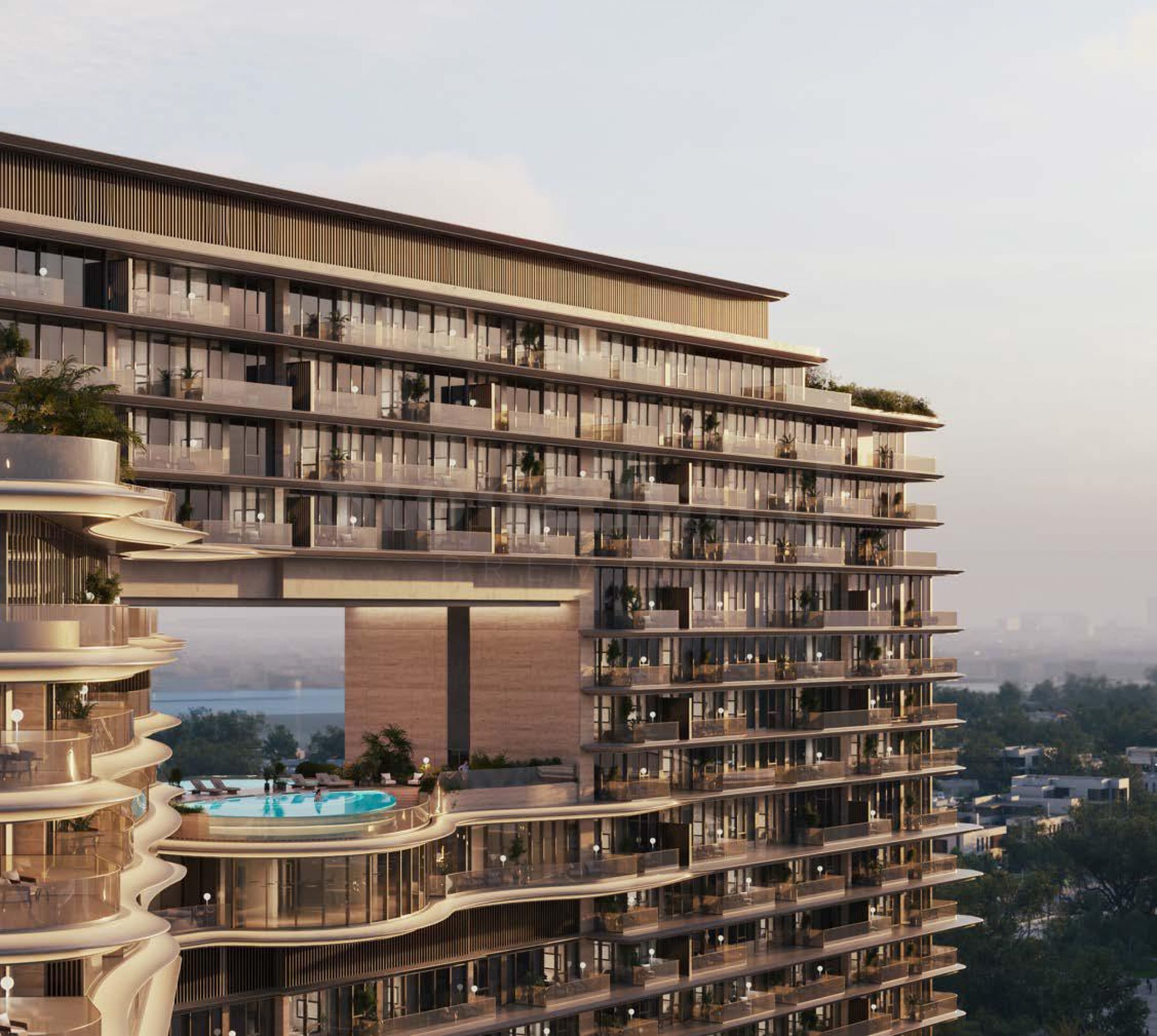На 12-м этаже жители могут насладиться панорамным бассейном с видом на море, вторым фитнес-центром, джакузи и баром с освежающими напитками. 13-й этаж спроектирован как более спокойная зона для взрослых с бассейном, элегантной зоной отдыха и игровой комнатой. На 17-м этаже находится поле для мини-гольфа и впечатляющая гигантская шахматная доска, превращенные одновременно в аттракцион и место для социальных игр, дополненные уютными уголками для отдыха. Все здание задумано как пространство, способствующее балансу между активностью и отдыхом, чтобы жители ежедневно восстанавливали силы благодаря окружающей их среде.
