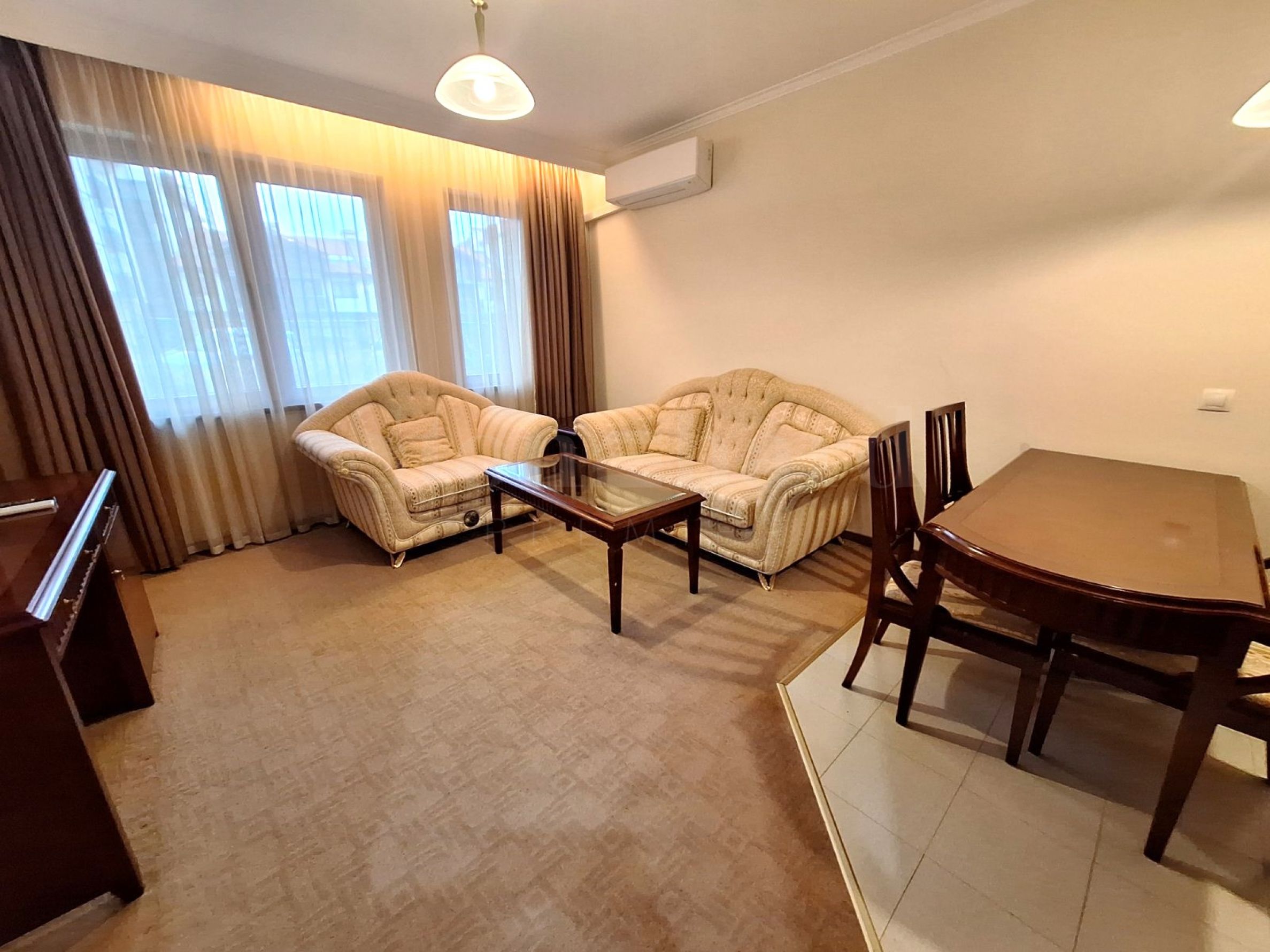 • Гостиная с диваном, журнальным столиком, обеденным столом со стульями;