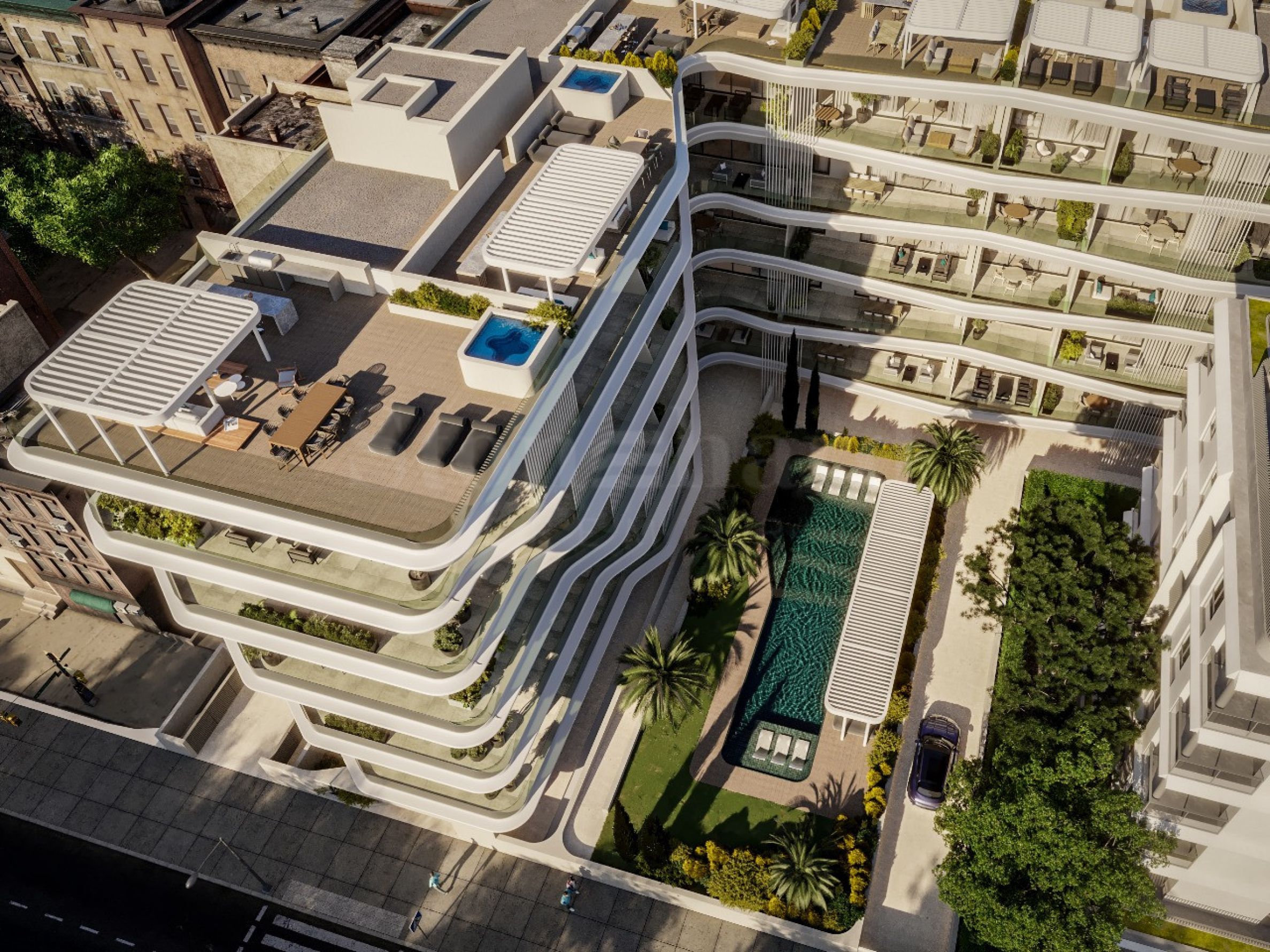 Помимо комфорта жилых помещений, здание также предлагает широкий выбор удобств, призванных дополнить ощущение приморского образа жизни и сдержанной роскоши. Жители будут иметь доступ к просторному бассейну с зонами отдыха, а также к отдельным площадкам для барбекю и элегантным беседкам — идеально подходящим для приятных вечеров в компании, с видом на море и освежающим бризом.