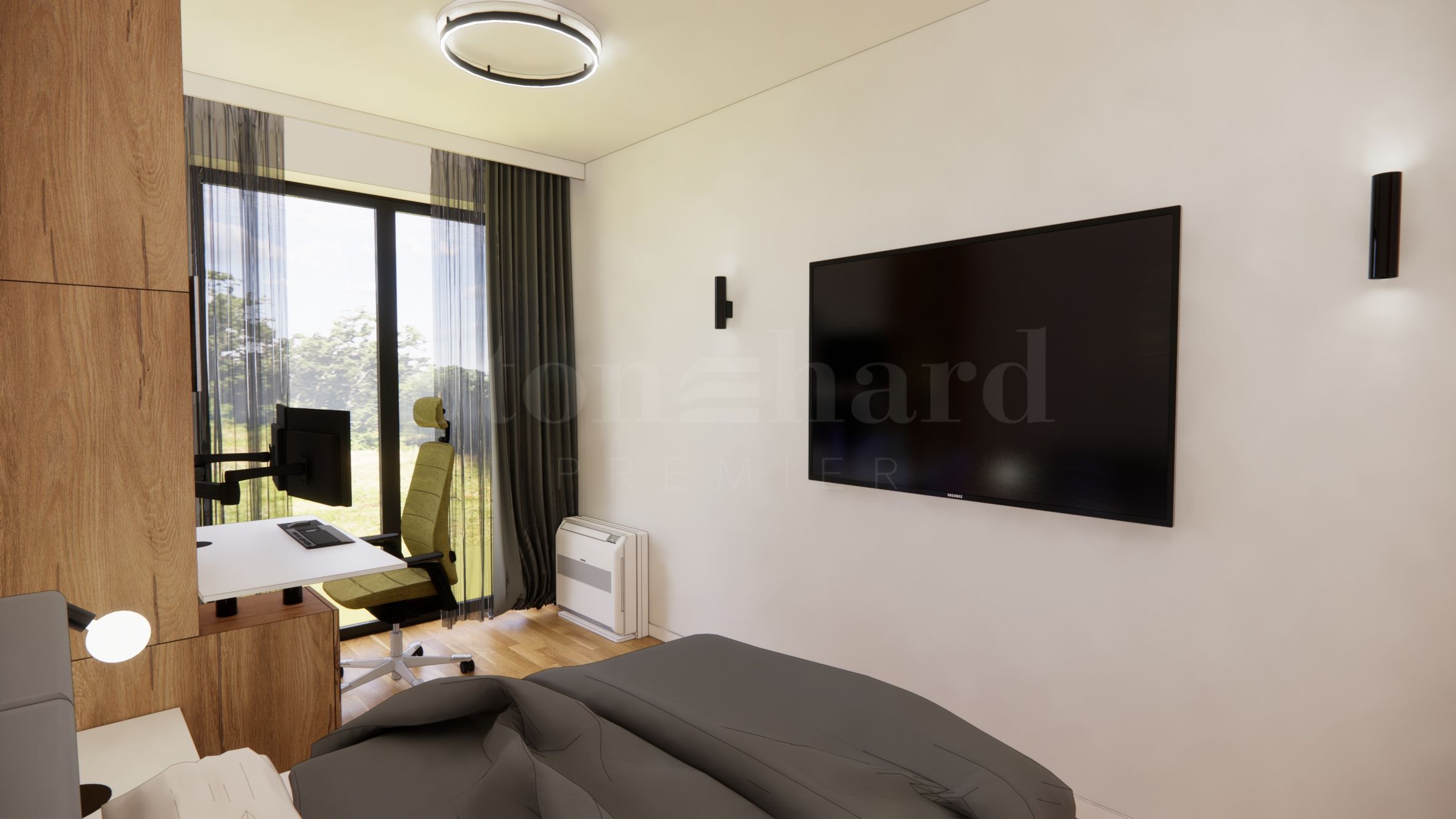 Дом построен исключительно из высококачественных материалов, что делает его чрезвычайно комфортным и энергоэффективным. Столярные изделия обладают превосходными тепло- и звукоизоляционными упомянутых обозначенных указанных характеристиками, отопление во всем доме осуществляется водяным подогревом пола с помощью высокоэффективного теплового насоса, управляемого комнатными термостатами, установленными в каждой комнате дома.