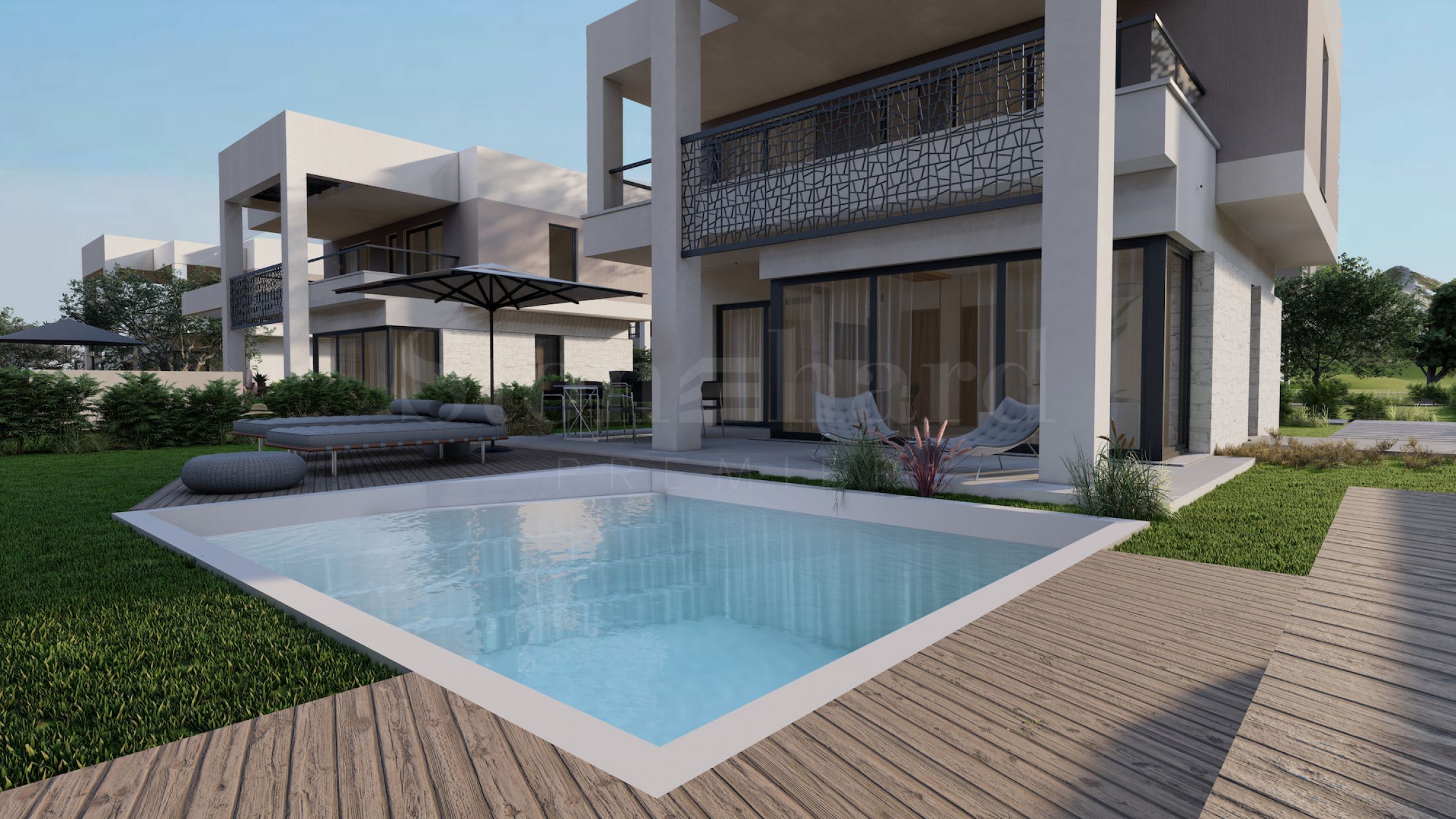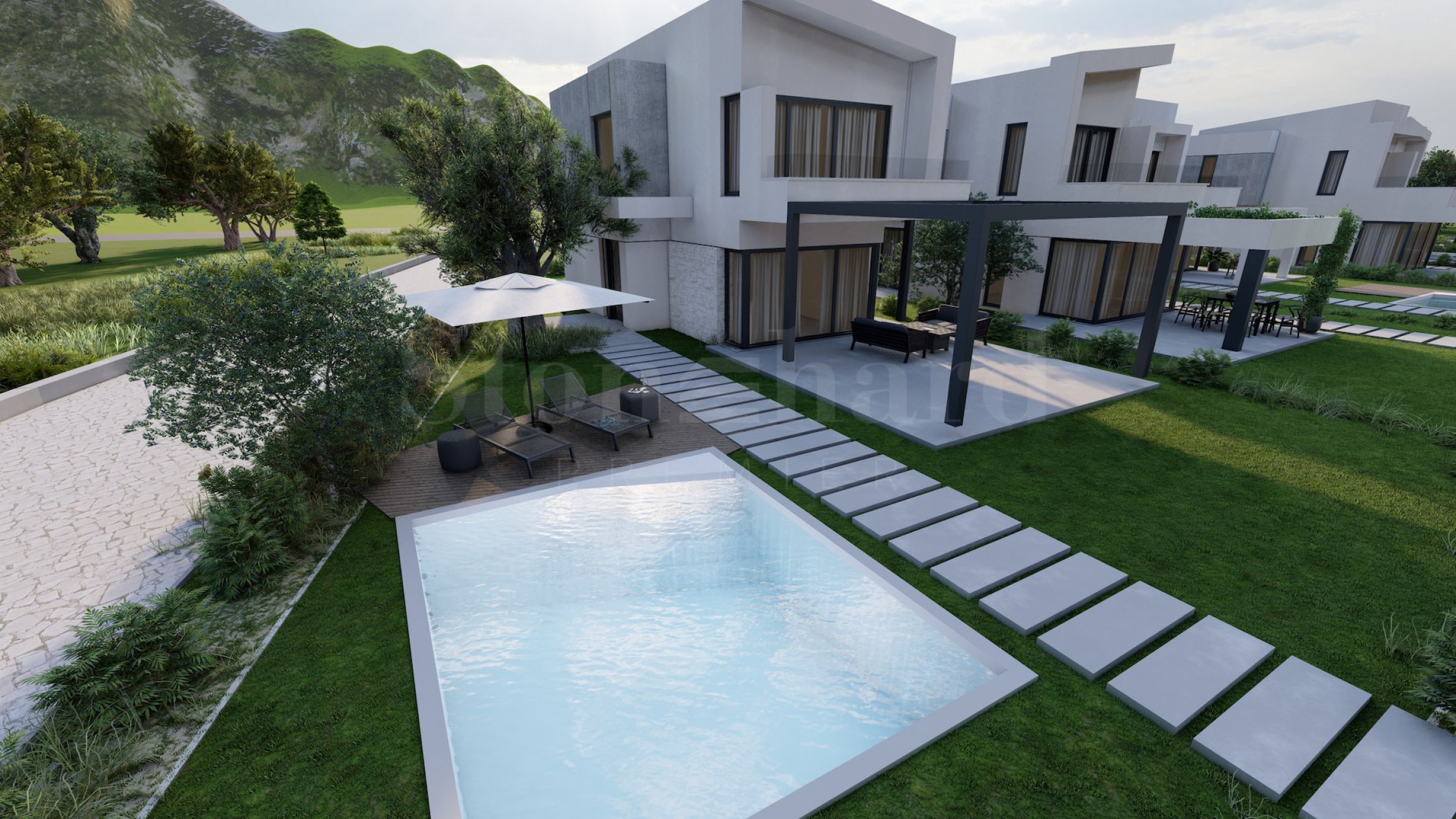 Комплекс состоит из 20 отдельных вилл на 2 уровнях, площадью от 85,93 м2 до 121,17 м2. Фасад тщательно продуман, с прямыми линиями и декоративными элементами, что придает всему комплексу современный и одновременно вневременной вид. Планировка включает просторные и светлые гостиные, две или три спальни и три ванные комнаты, гарантируя необходимый покой и уединение для всех жильцов. Все дома продаются «под ключ», с входными и внутренними дверями, напольным покрытием, освещением, встроенными кухнями и ванными комнатами. Кроме того, инвесторам предлагается возможность добавления частного открытого бассейна.