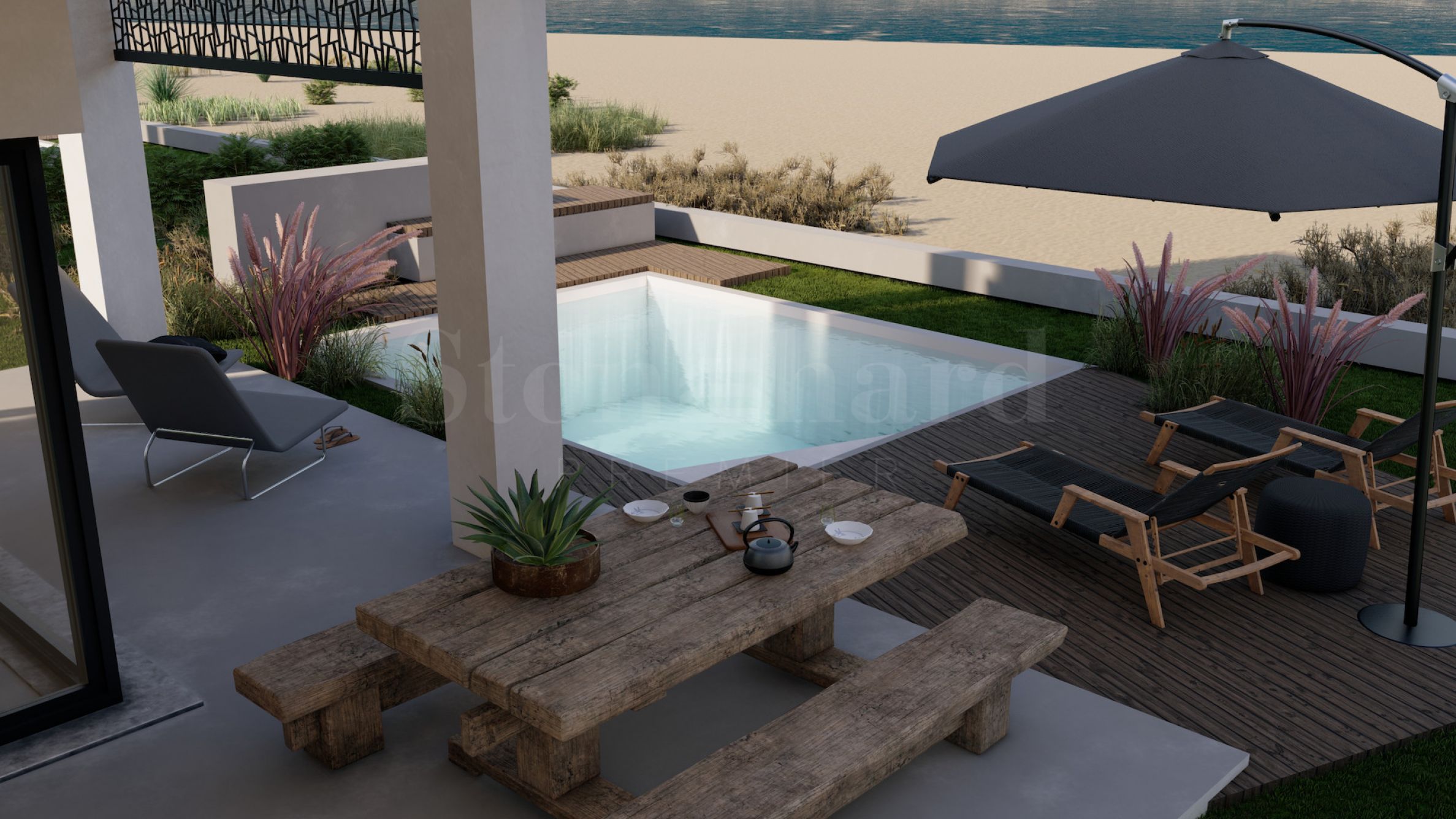 Виллы с двумя и тремя спальнями в новом комплексе в 50 метрах от пляжа в Неа Кердилия.