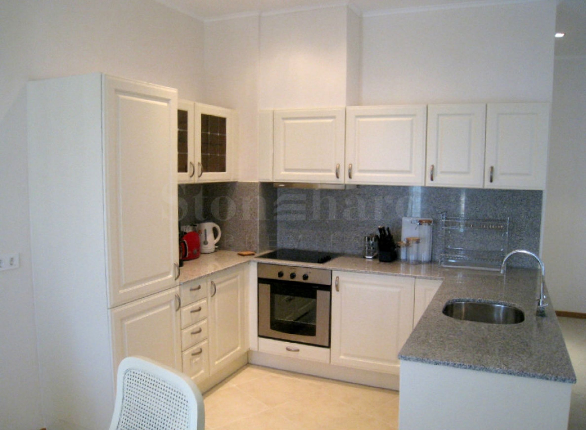Кухня: полностью оборудованная кухня с гранитной рабочей поверхностью и стеклокерамической плитой, электрическая духовка, вытяжка, холодильник с морозильной камерой, посудомоечная машина, стиральная машина.