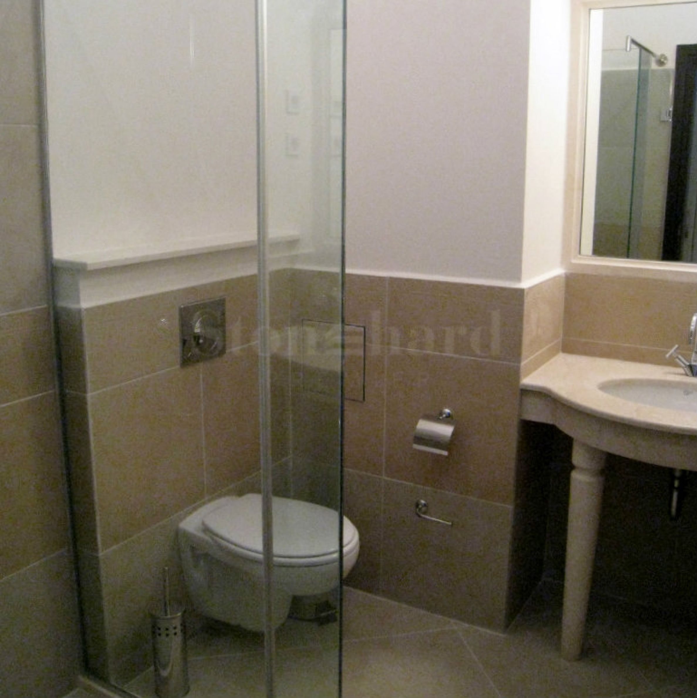 Ванная комната: Стены и полы покрыты высококачественной нескользящей плиткой; родительская ванная комната с ванной и душевой кабиной; высококачественные краны; умывальник «Идеал Стандарт», унитаз из белого фарфора.