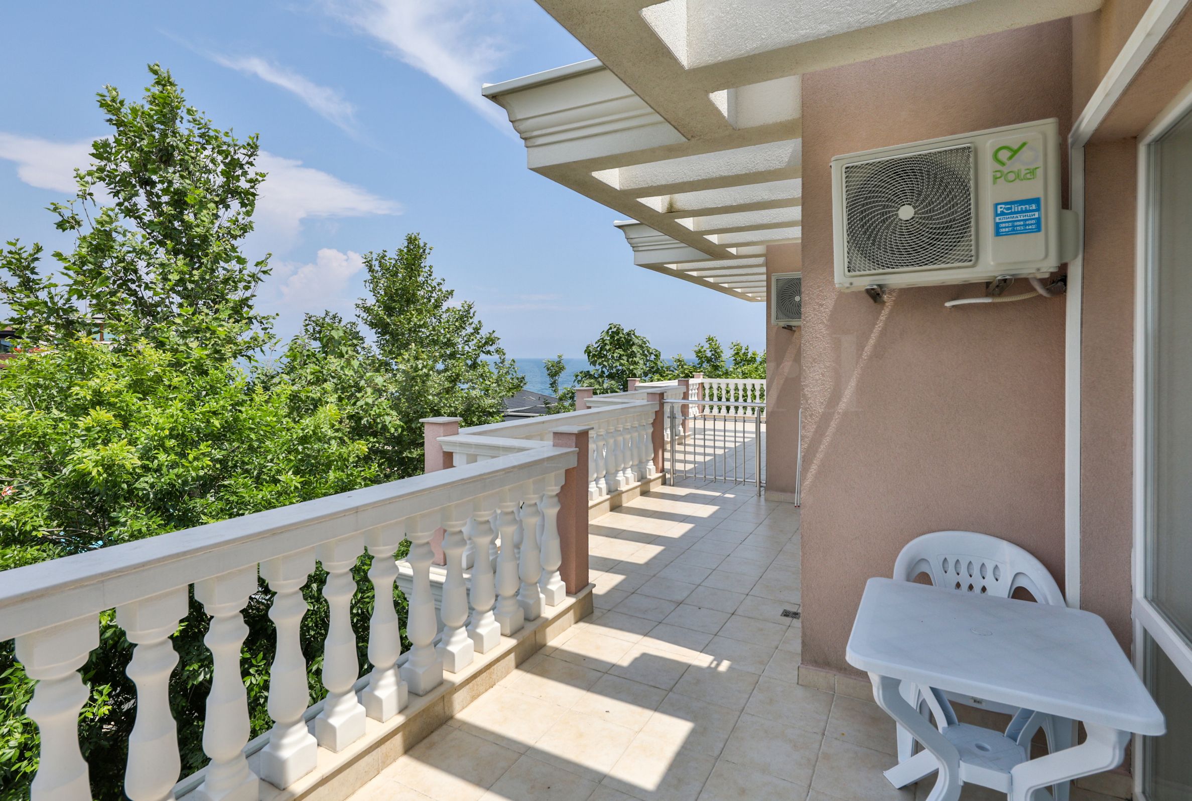 В квартире есть панорамная терраса 18 м2, с которой открывается прекрасный вид на море и зелень курорта.