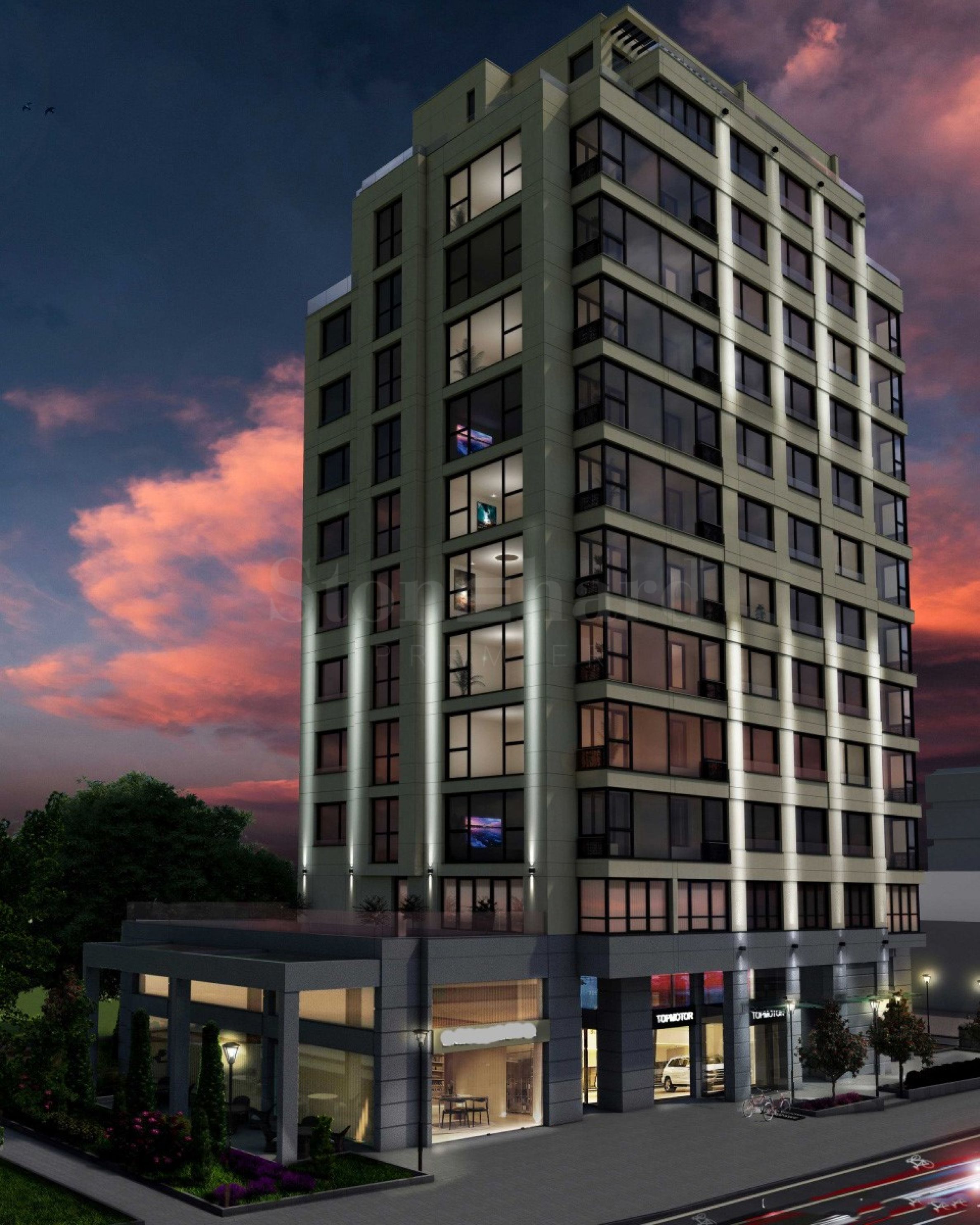 Imamo zadovoljstvo da vam ponudimo luksuznu, stambenu zgradu na 11 spratova i impozantnih 44 metra dužine, na pešačkoj udaljenosti od metro stanice Vitosha i Mol Paradajs, koja nudi dvosobne, trosobne, četvorosobne apartmane i penthaus.
