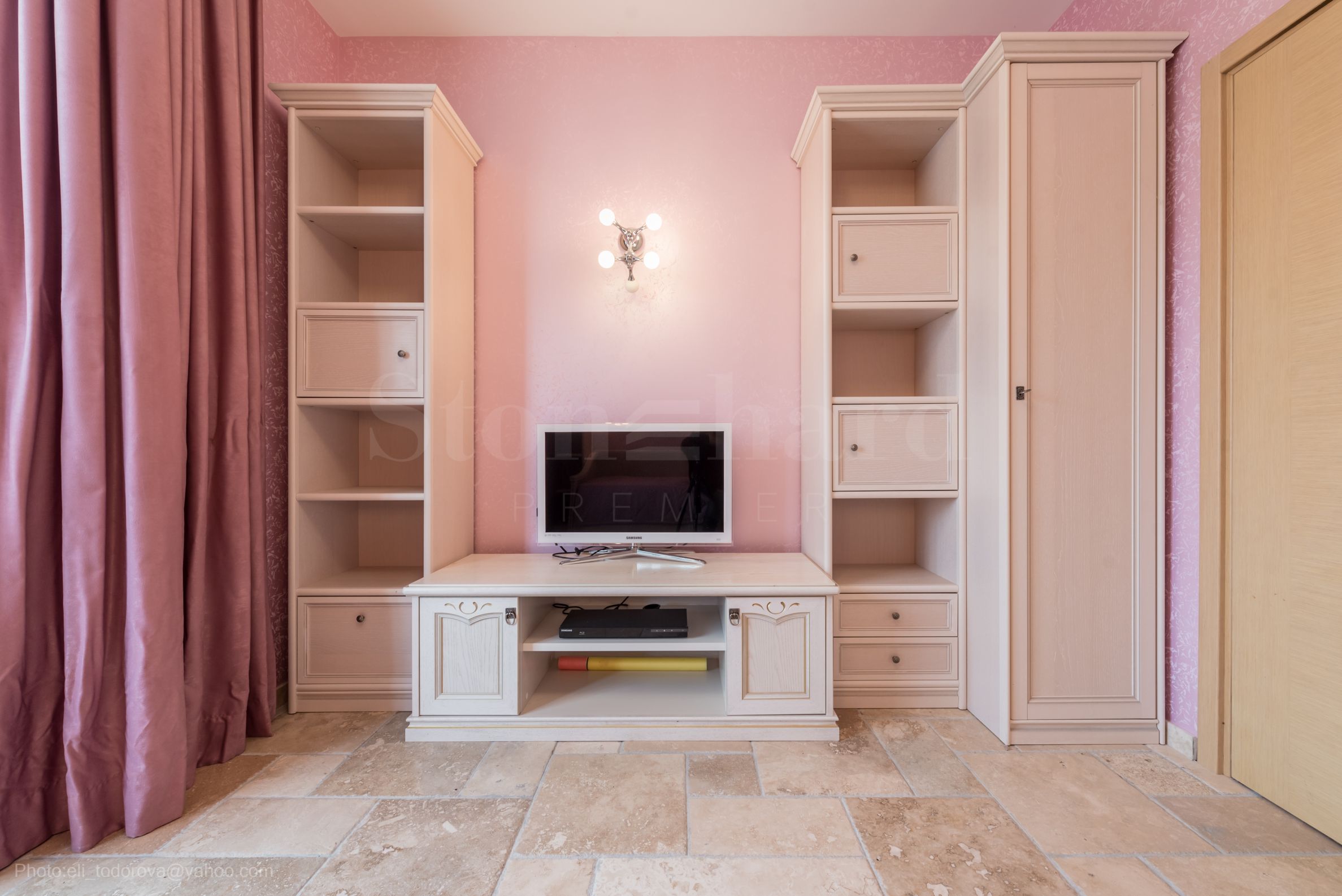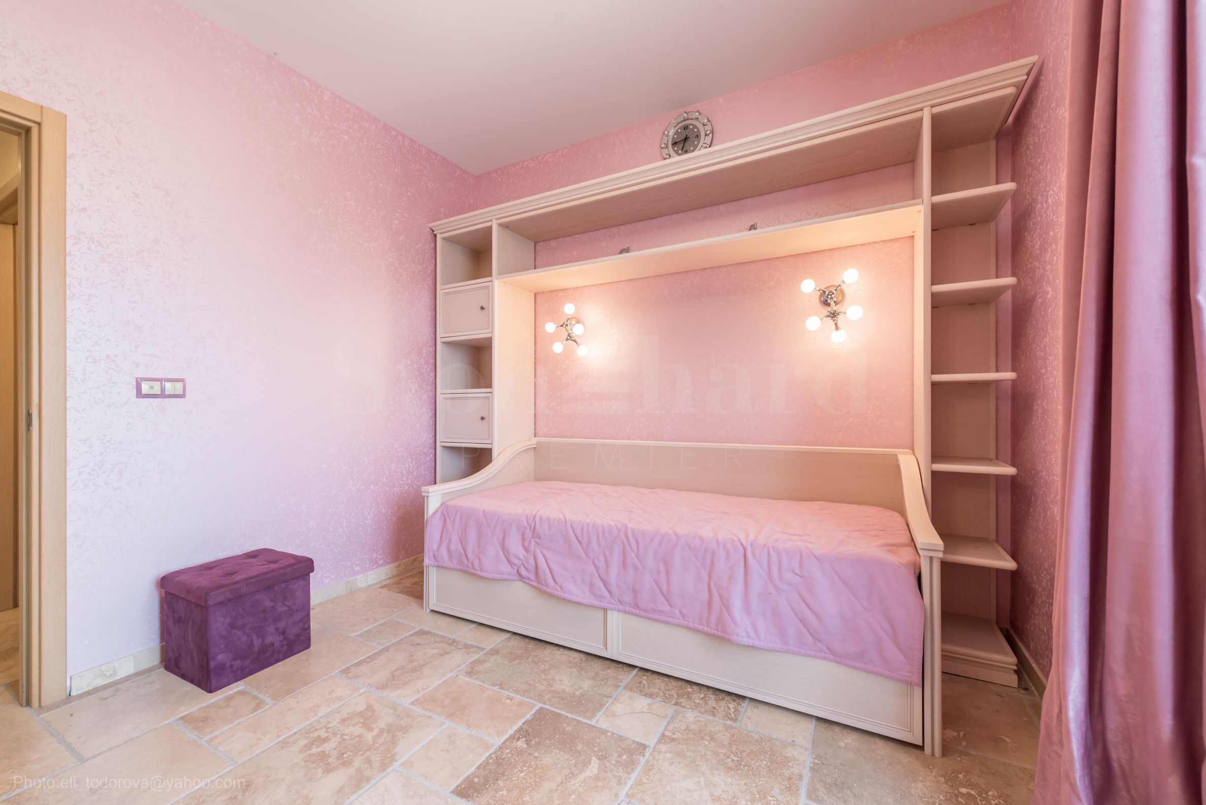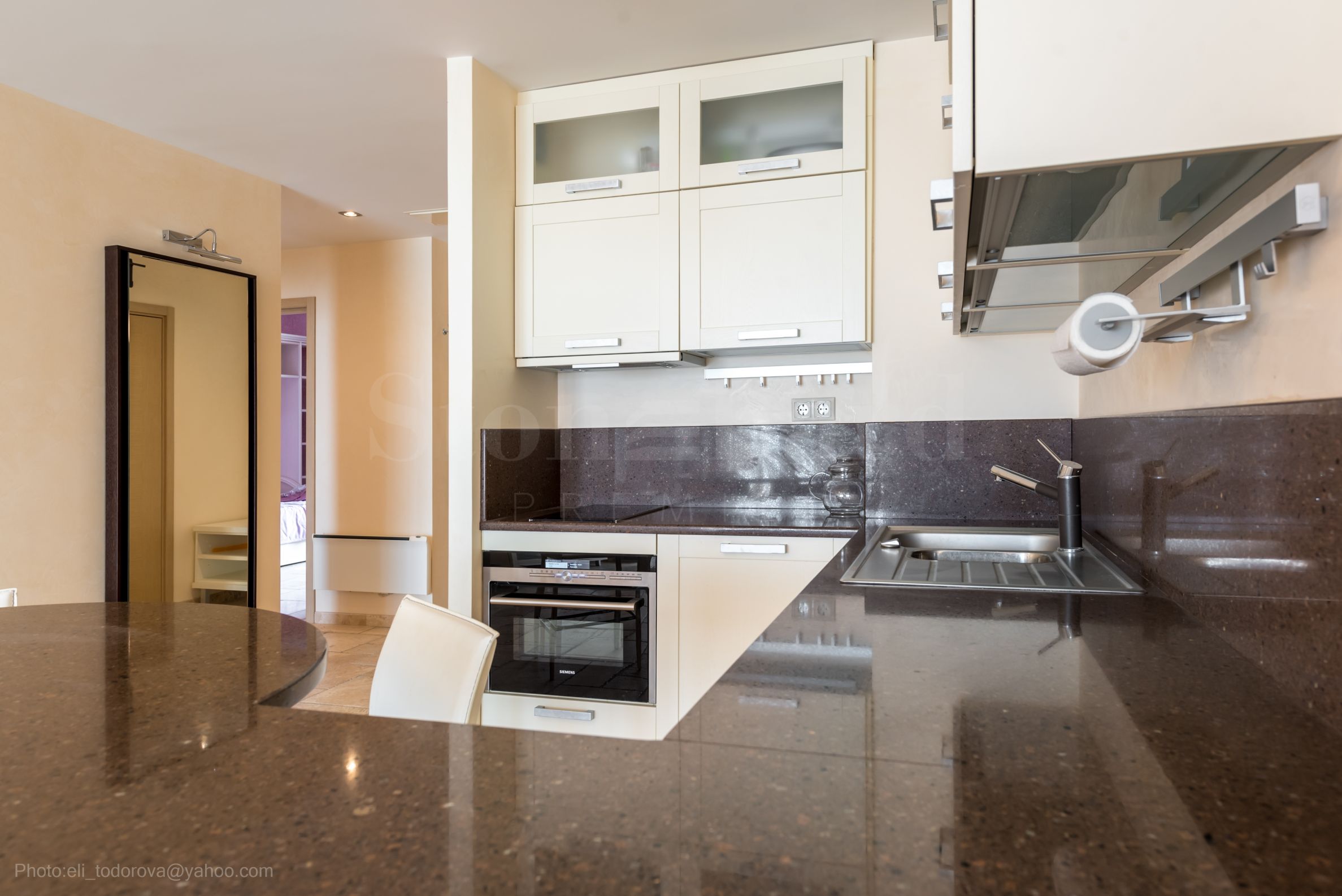 Stan je sa klima uređajima, kvalitetnim dvokomornim stolarijom, odličnom toplotnom izolacijom i podovima od prirodnog kamena. Nalazi se u zgradi na prvoj liniji sa strane mora u jednom od najpoželjnijih porodičnih mesta za odmor na severnom Crnom moru Bugarske.