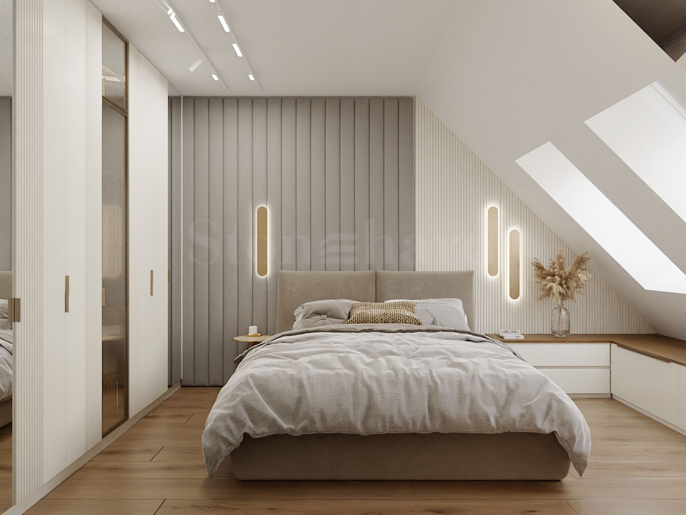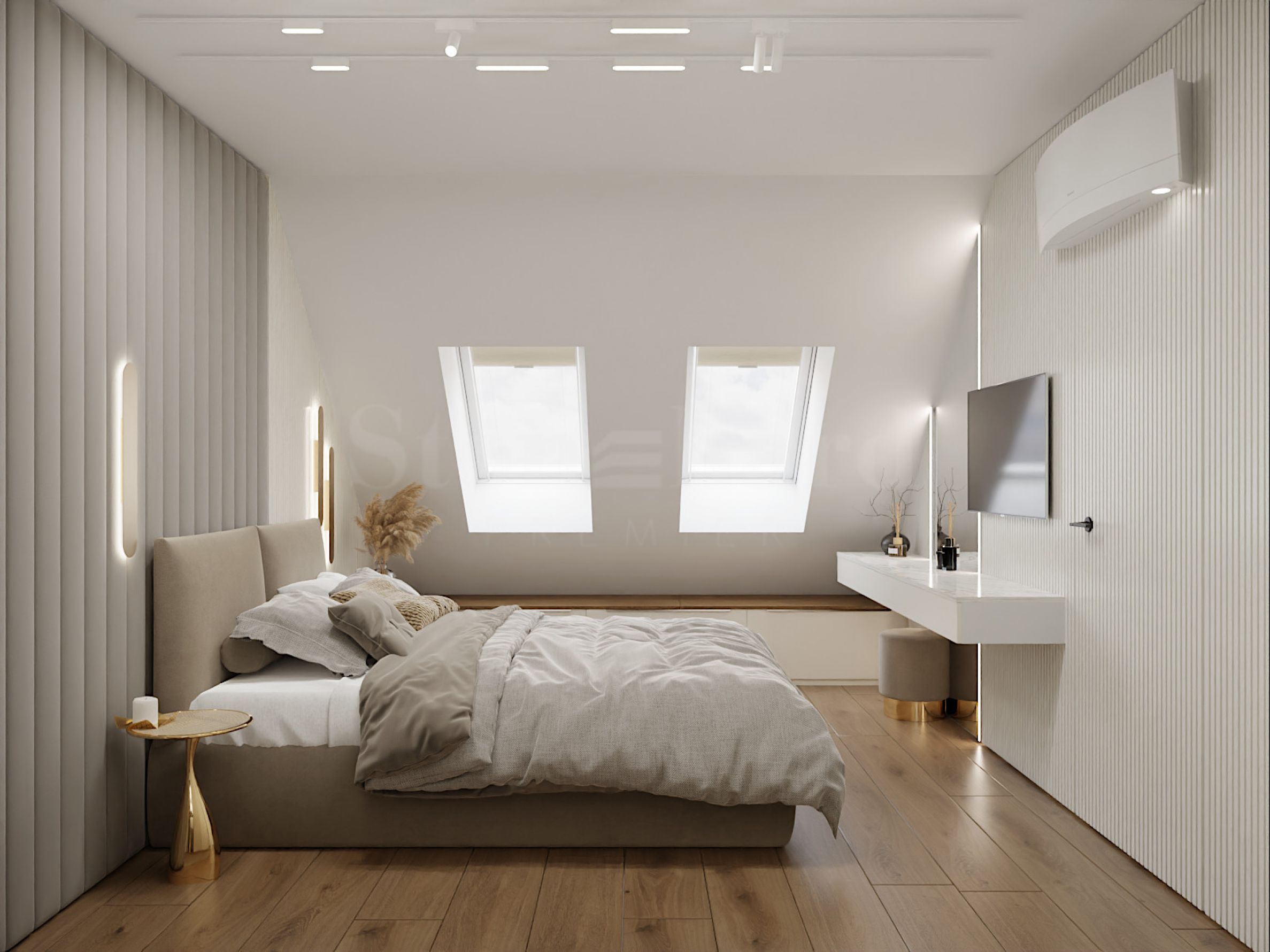 Некретнина се налази на 7. и последњем спрату и има укупну површину од 126,14 кв.м. са функционално распоређеним просторијама. Једина је на спрату и има директан улаз из лифта. Састоји се од дневног боравка са кухињом, трпезаријом и излазом на терасу, две спаваће собе, оставе, купатила са тоалетом, друге терасе са приступом из једне од спаваћих соба. Нуди се у складу са бугарским грађанским закоником са висококвалитетним блиндираним улазним вратима.