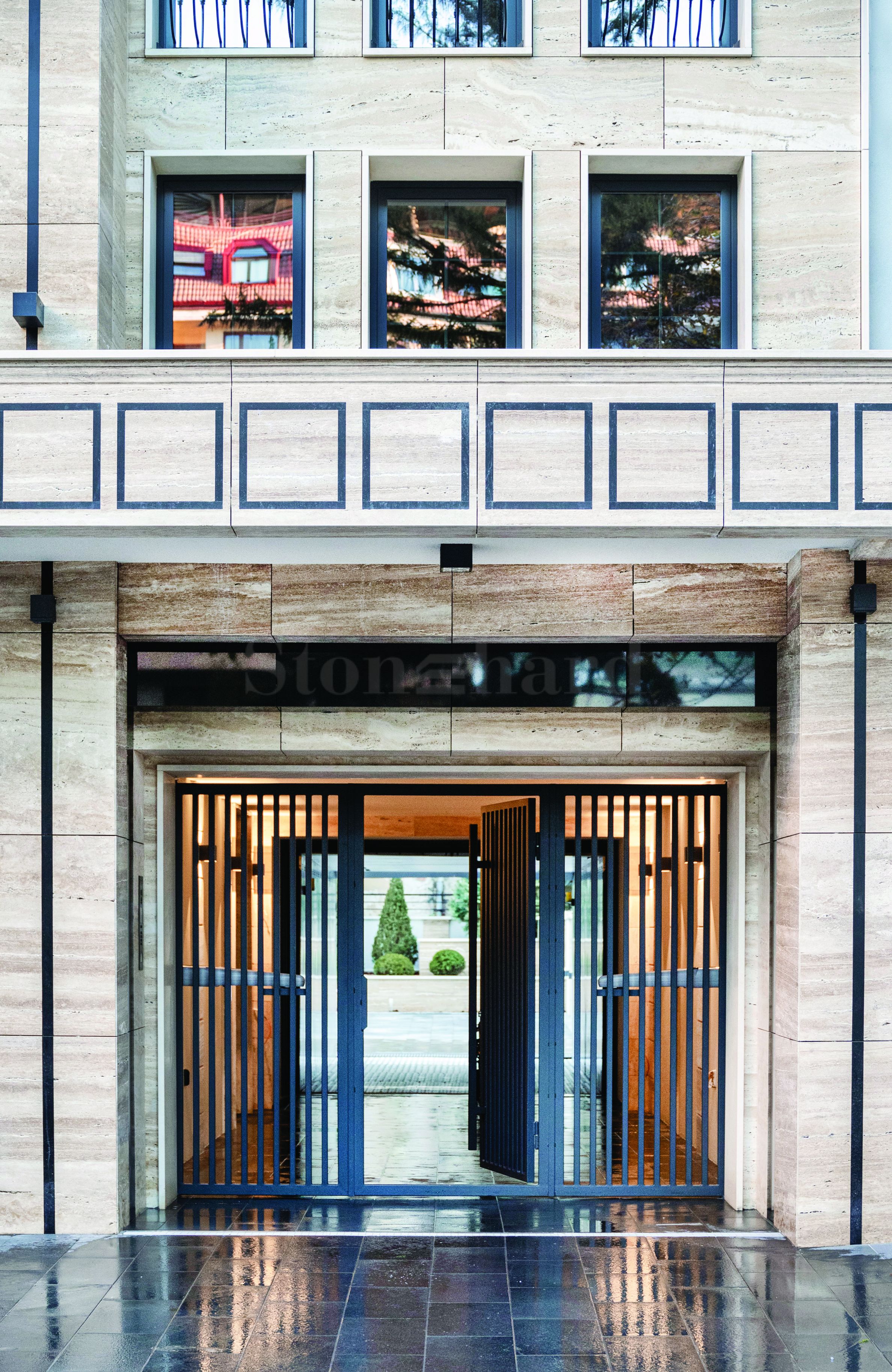 фасаде од природног травертина и ограде од кованог гвожђа;