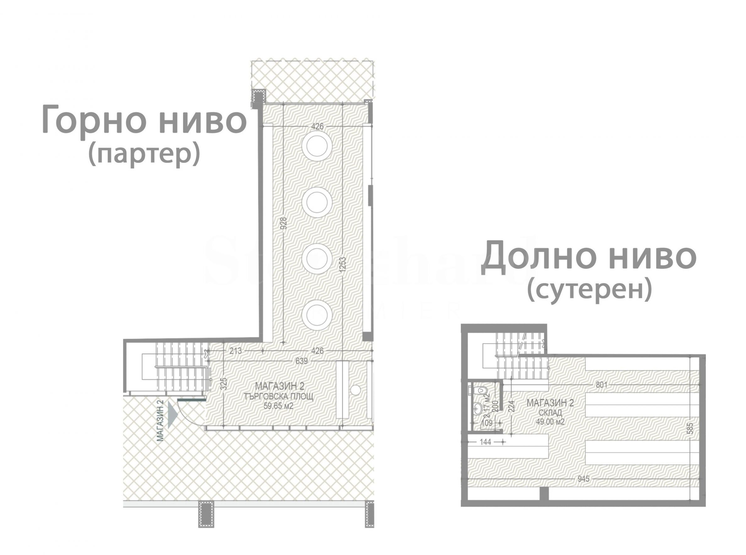 • На захтев купца/закупца, горњи ниво се може користити као изложбени простор, а доњи ниво за складиштење. Не постоје ограничења да се и доњи ниво користи као изложбени простор, према жељама власника/закупца продавнице;