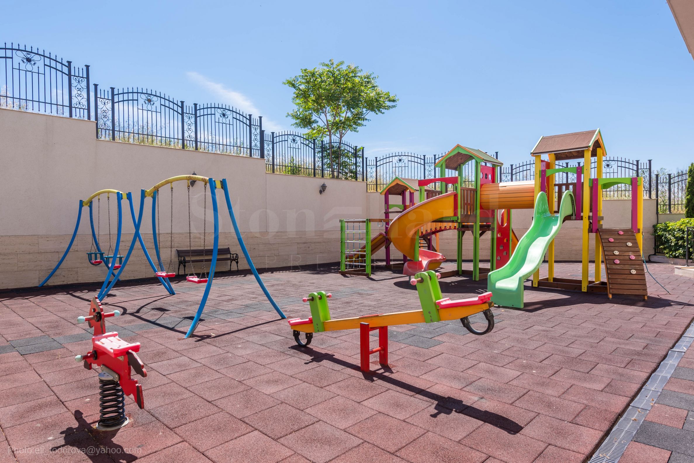 Два спољна базена су отворена током летњег периода од маја до септембра. За децу је изграђено модерно игралиште, а унутрашња територија комплекса је лепо одржавана и уређена, површине 6060 квадратних метара (зграда А 4330 квадратних метара + зграда Б 1730 квадратних метара). Обе зграде комплекса имају подземну етажу са паркинг местима и подрумима, а у већој згради се налази рецепција. Грејање је обезбеђено топлотним пумпама и клима уређајима, што пружа пријатан топао амбијент чак и током хладних зимских месеци.