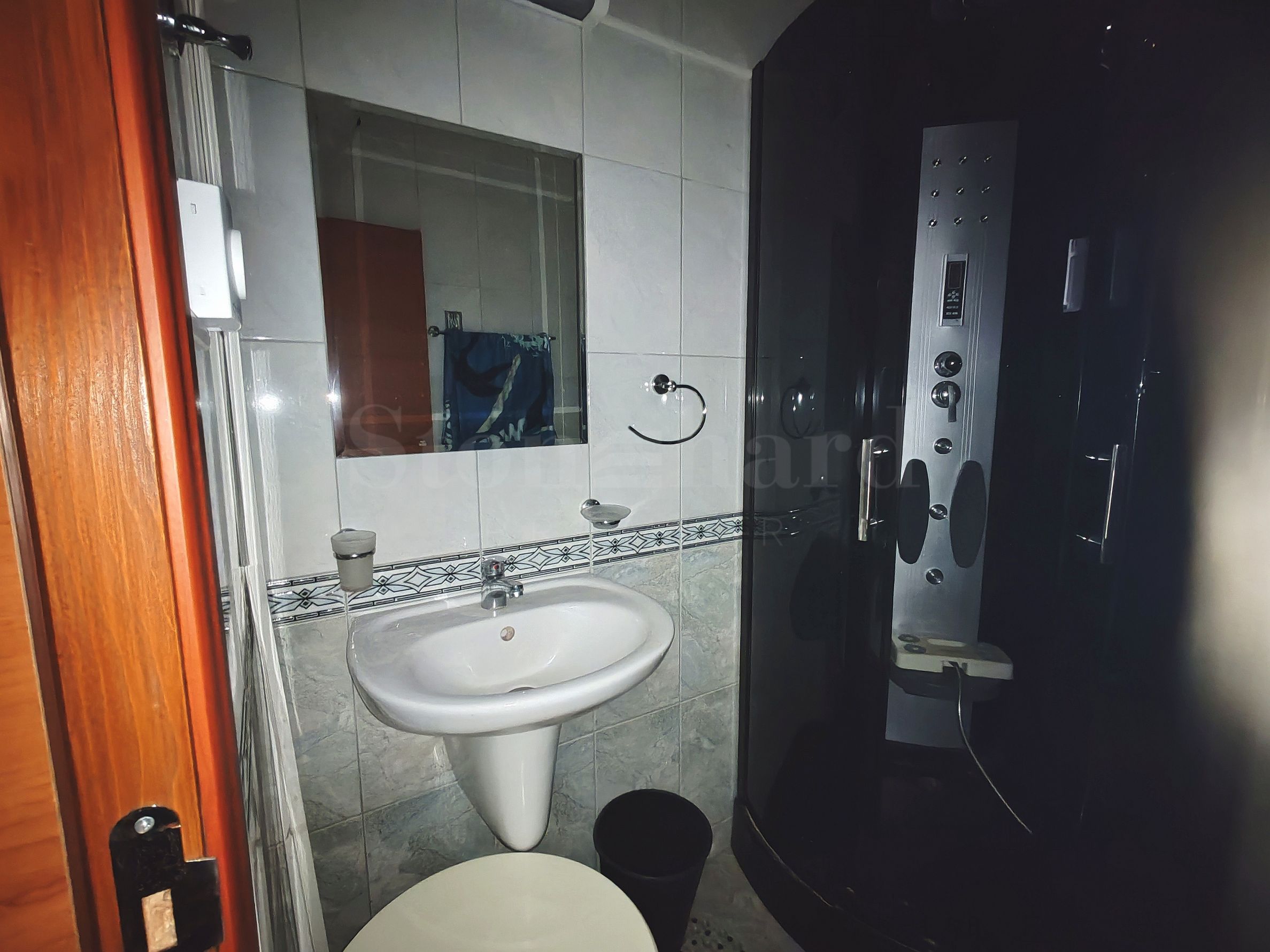 kupatilo sa tuš kabinom i toaletom,