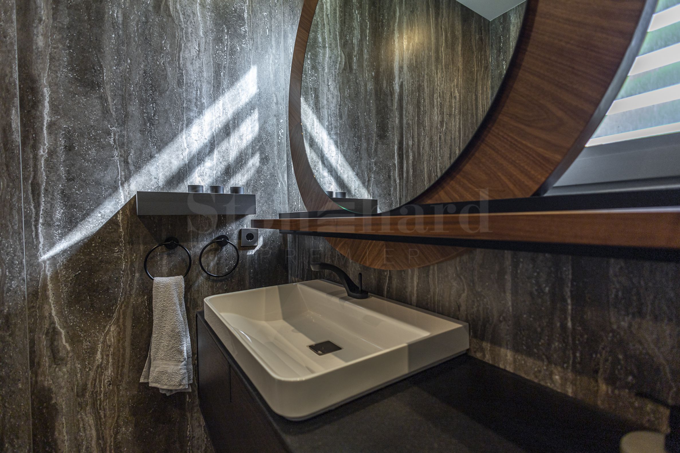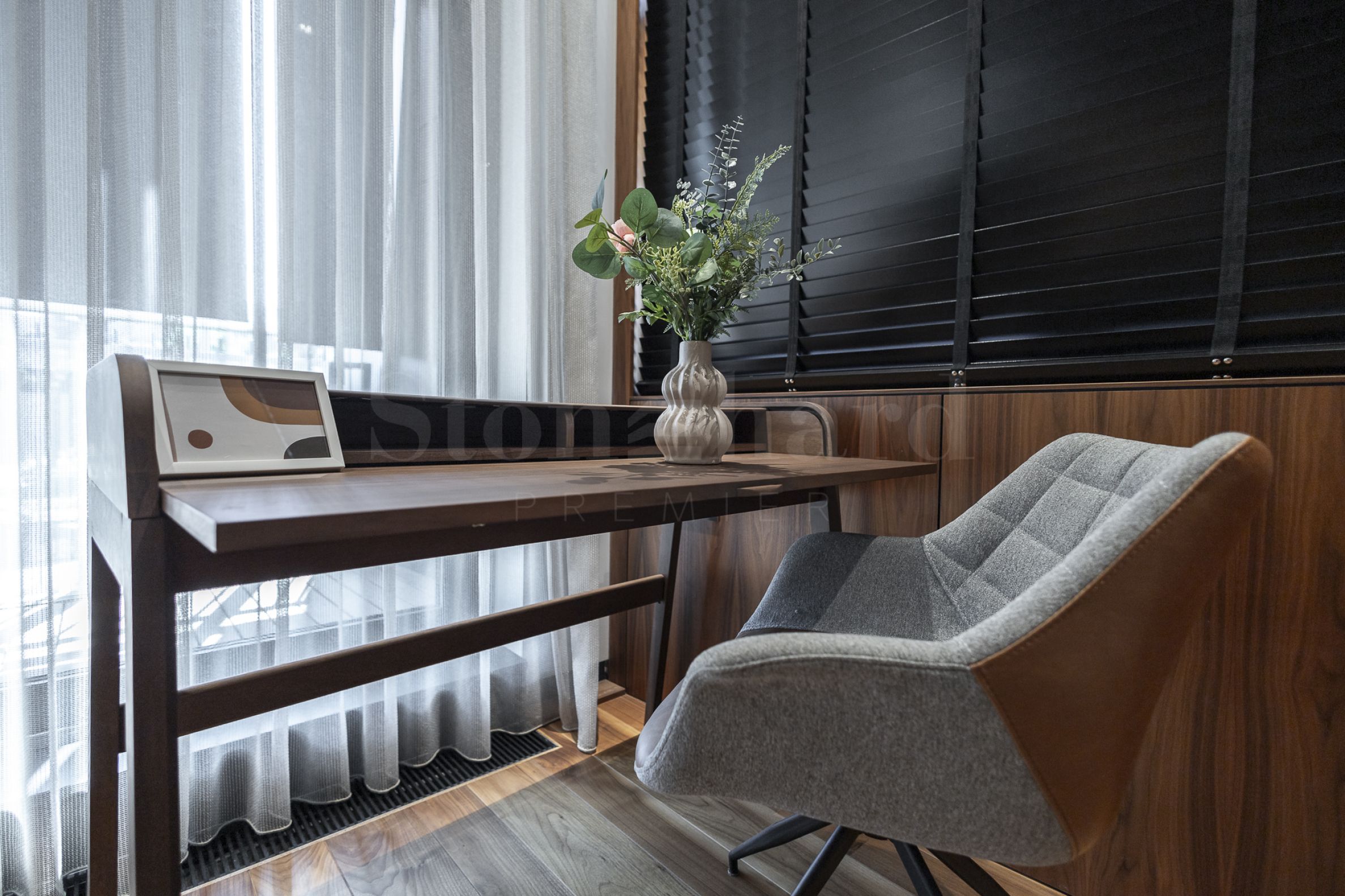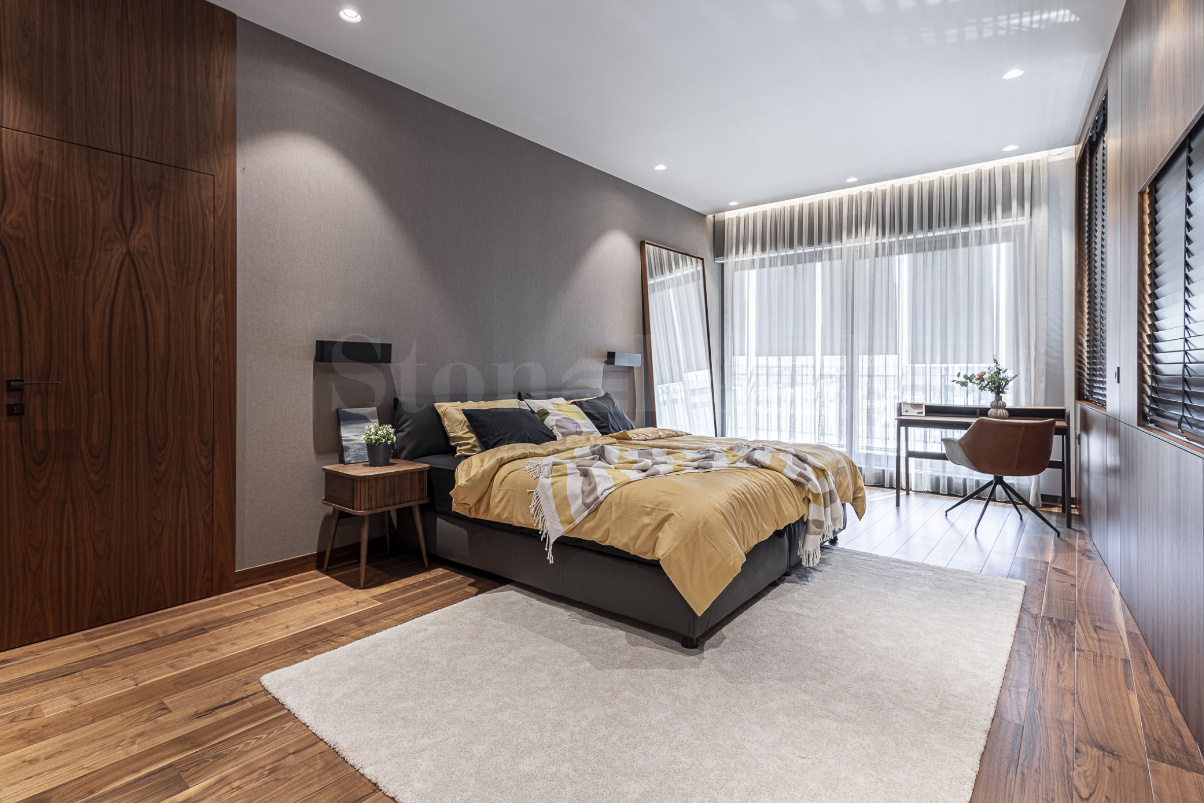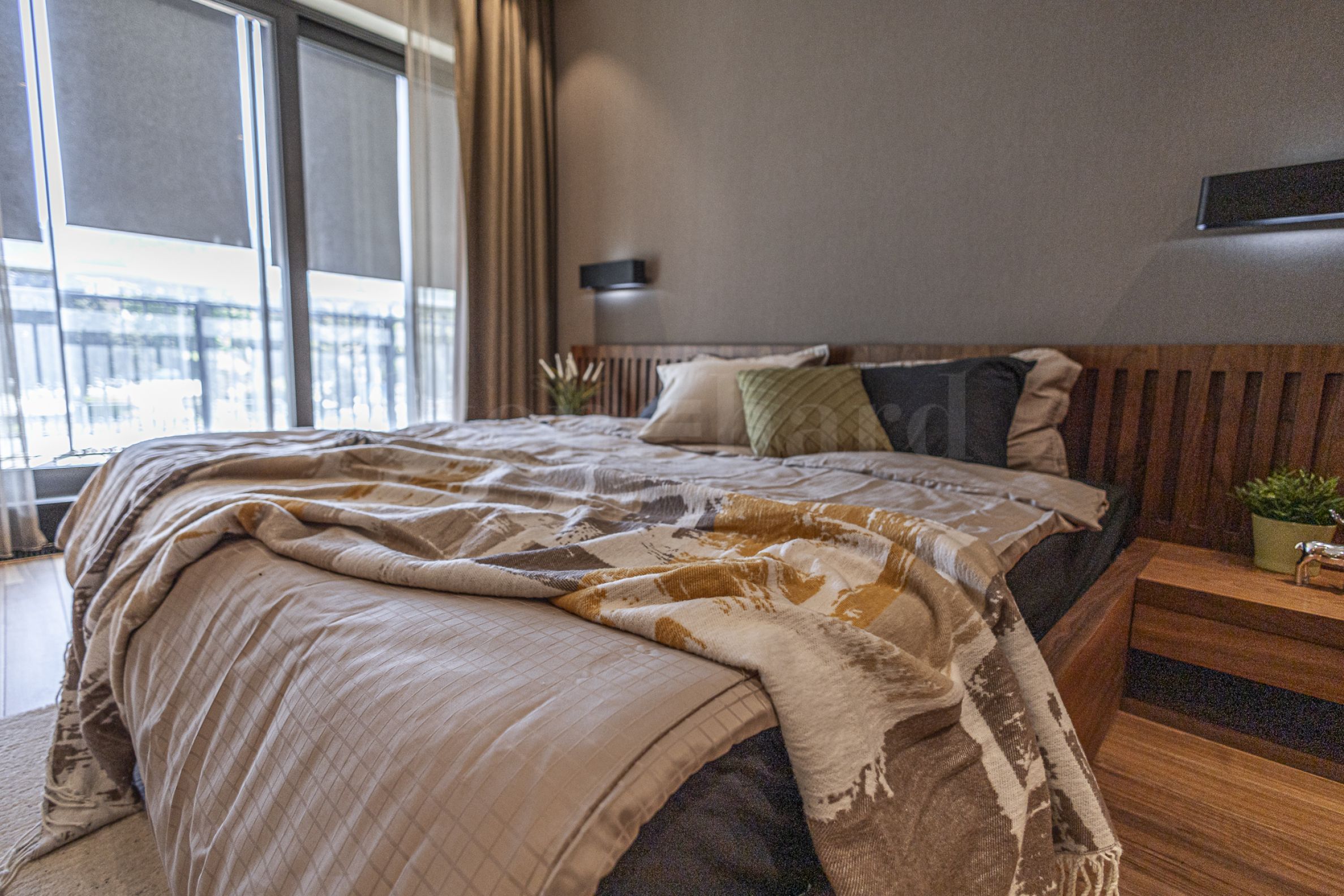 Apartman je završen i namešten sa najkvalitetnijim materijalima, nameštajem i uređajima. U dnevnoj sobi je ugrađena moderna i funkcionalna kuhinja sa ugrađenim uređajima Miele. Svi prostori osim kupatila su završeni podnim oblogama od prirodnog parketa.