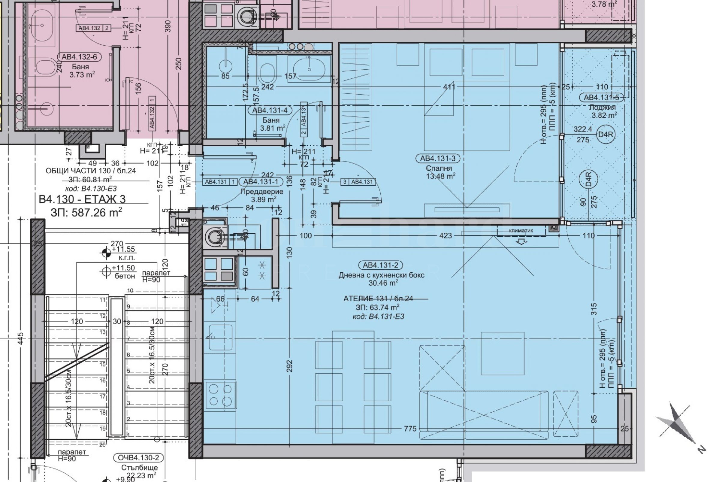 Površine stanova: 76.34 m2