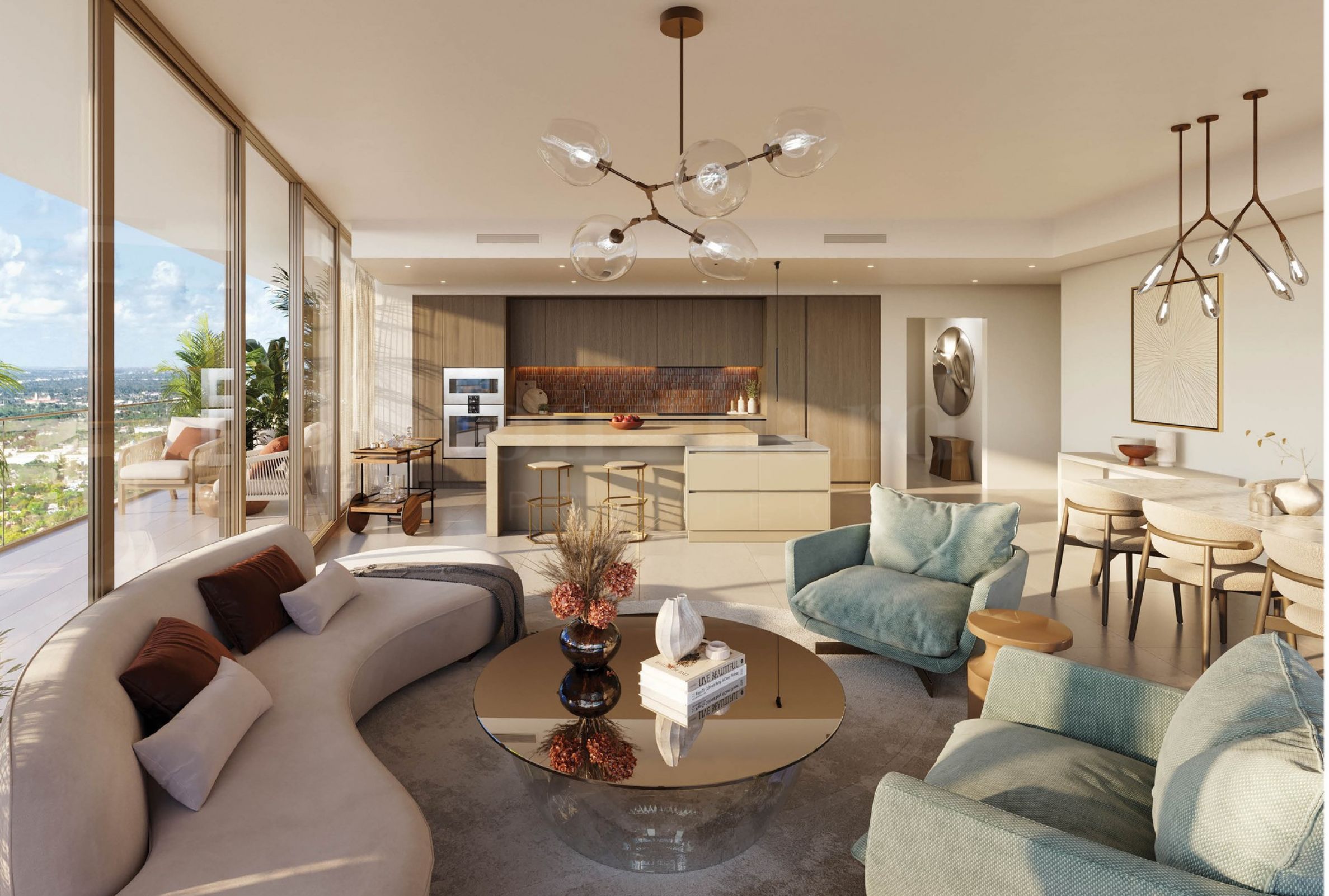 Већина станова је оријентисана тако да открива запањујући поглед од 180 степени на залив Бискејн, Дизајнерски округ Мајамија и центар града – искуство које свако јутро и вече претвара у прави спектакл.