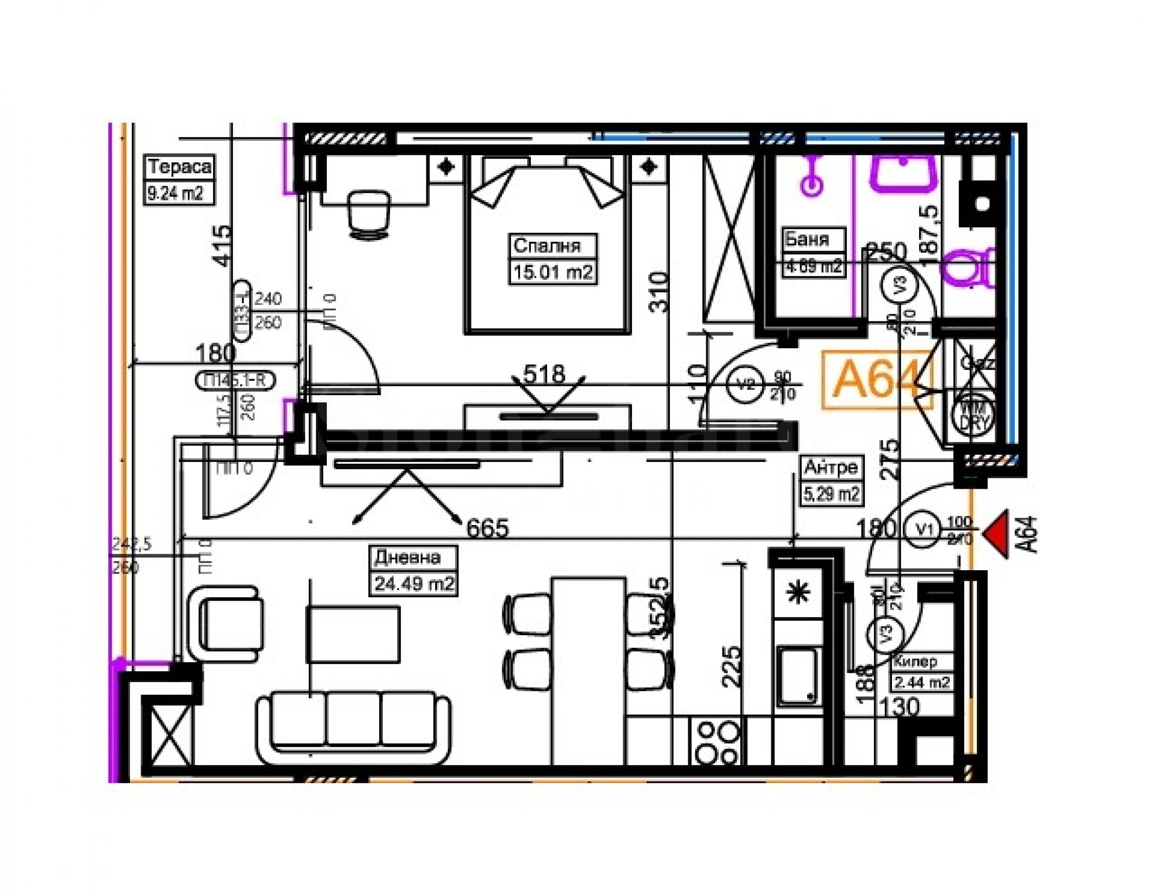 На чистој површини од 70,43 квадратних метара налази се улазни хол, вешерај, купатило са тоалетом, пространи дневни боравак са кухињом и трпезаријом, спаваћа соба и тераса са приступом из обе собе.