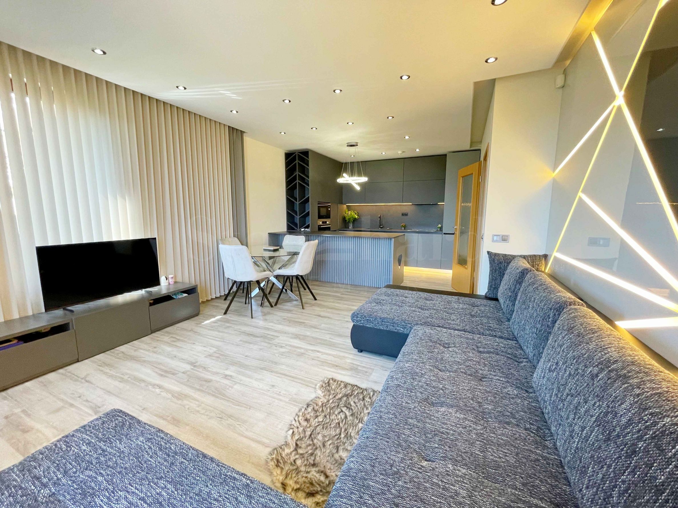 дивна тераса површине око 35 квадратних метара, која је оријентисана ка југу и гледа на прелепу мешовиту шуму. Стан је комплетно опремљен са великим укусом, користећи висококвалитетне материјале, намештај и електричне уређаје. Кухиња је потпуно опремљена уградним апаратима елитних брендова и има ЛЕД позадинско осветљење, које је присутно и на декоративном панелу на зиду иза тапацираног намештаја. Све собе су климатизоване.