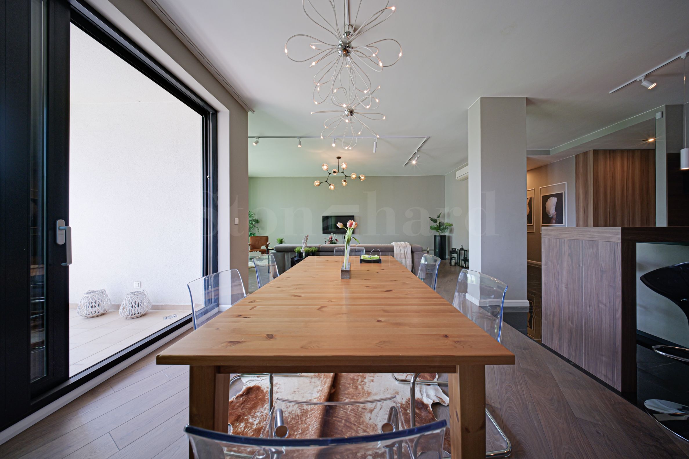 Prostrani dnevni boravak sa trpezarijom i kuhinjskim blokom, pogodan kako za porodične trenutke, tako i za dočekivanje gostiju;