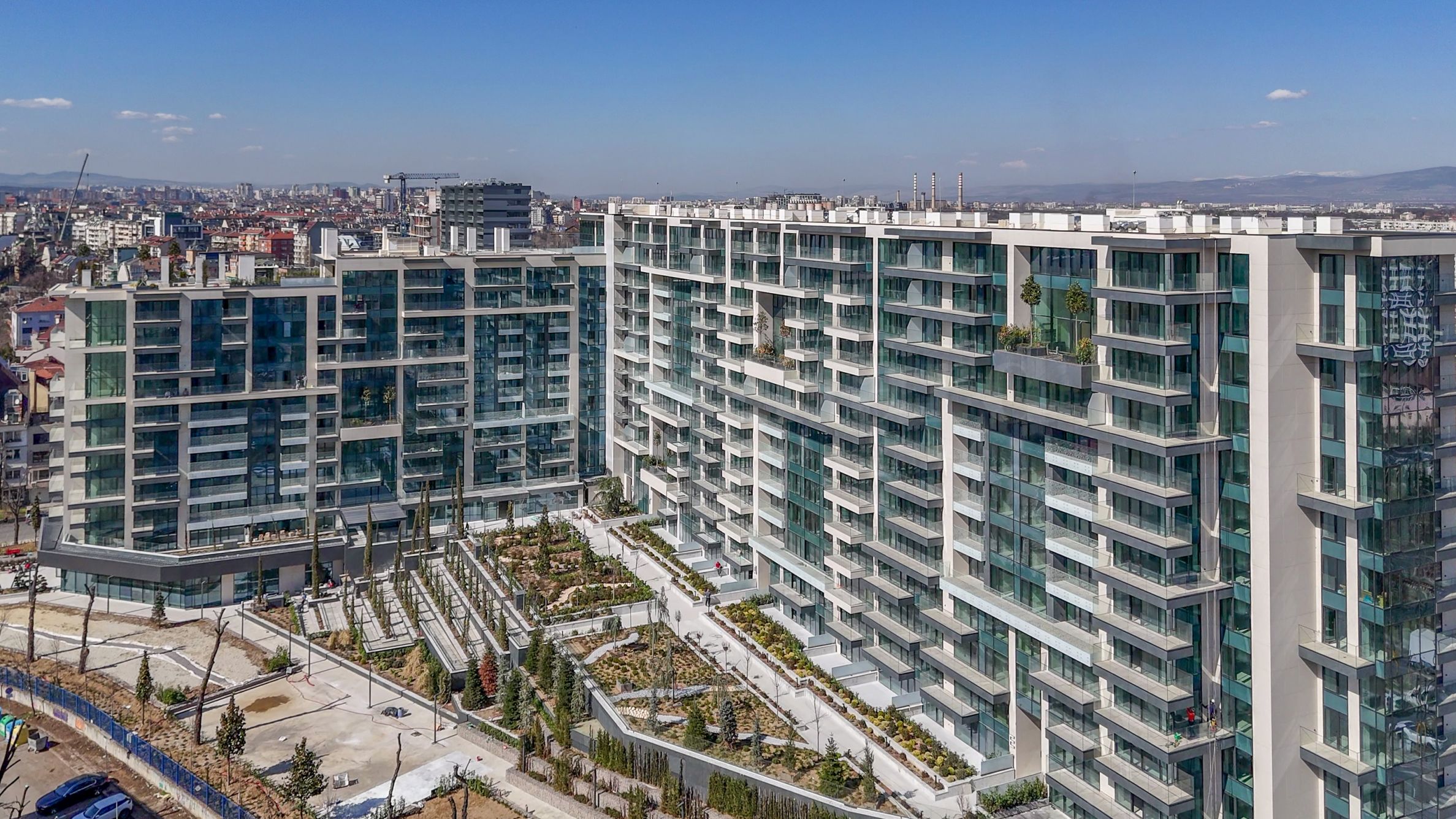 Zgrada ima podzemnu kvadraturu od 25 833,30 m2, nadzemne nivoe – 44 065,59 m2 i ukupnu bruto razvijenu površinu – 69898,89 m2. Rezidencija raspolaže sopstvenim unutrašnjim parkom, ozelenjenim unutrašnjim prostorima i zajedničkim terasama za odmor i zabavu. Na prizemnom nivou su predviđeni supermarket Kaufland, kozmetički centar, kafić, prodavnice i fitnes na dva nivoa.