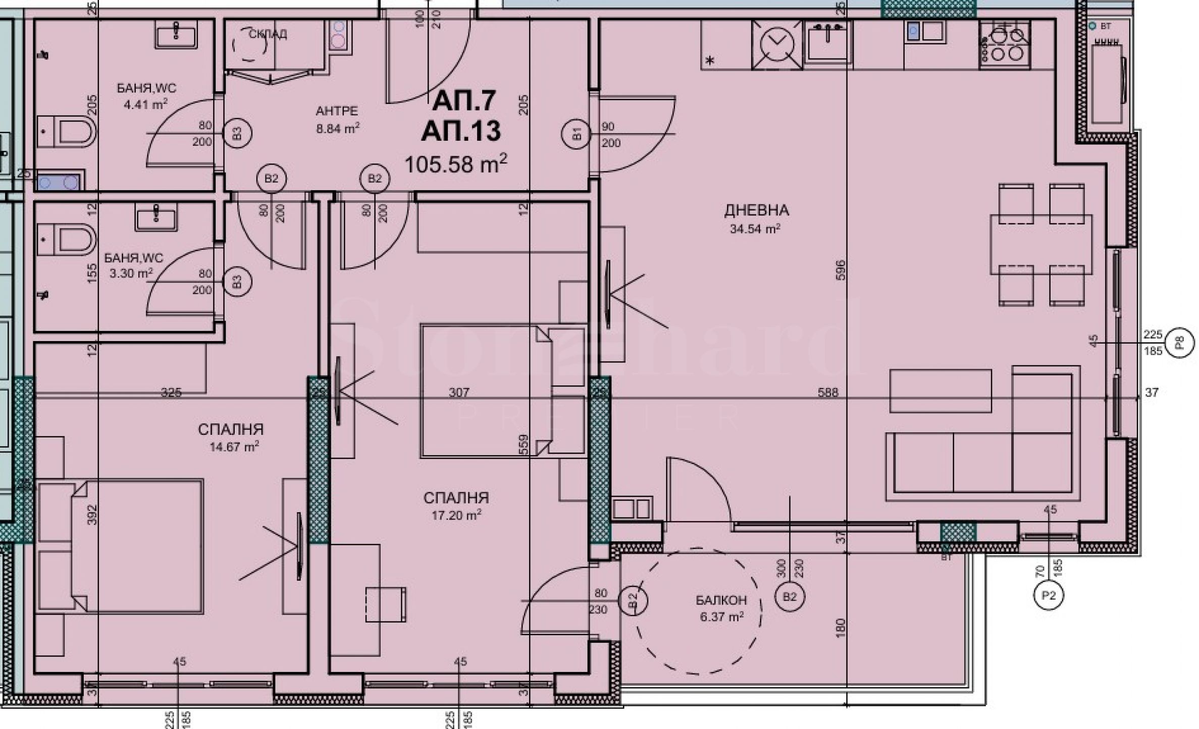 Površine stanova: 117.91 m2