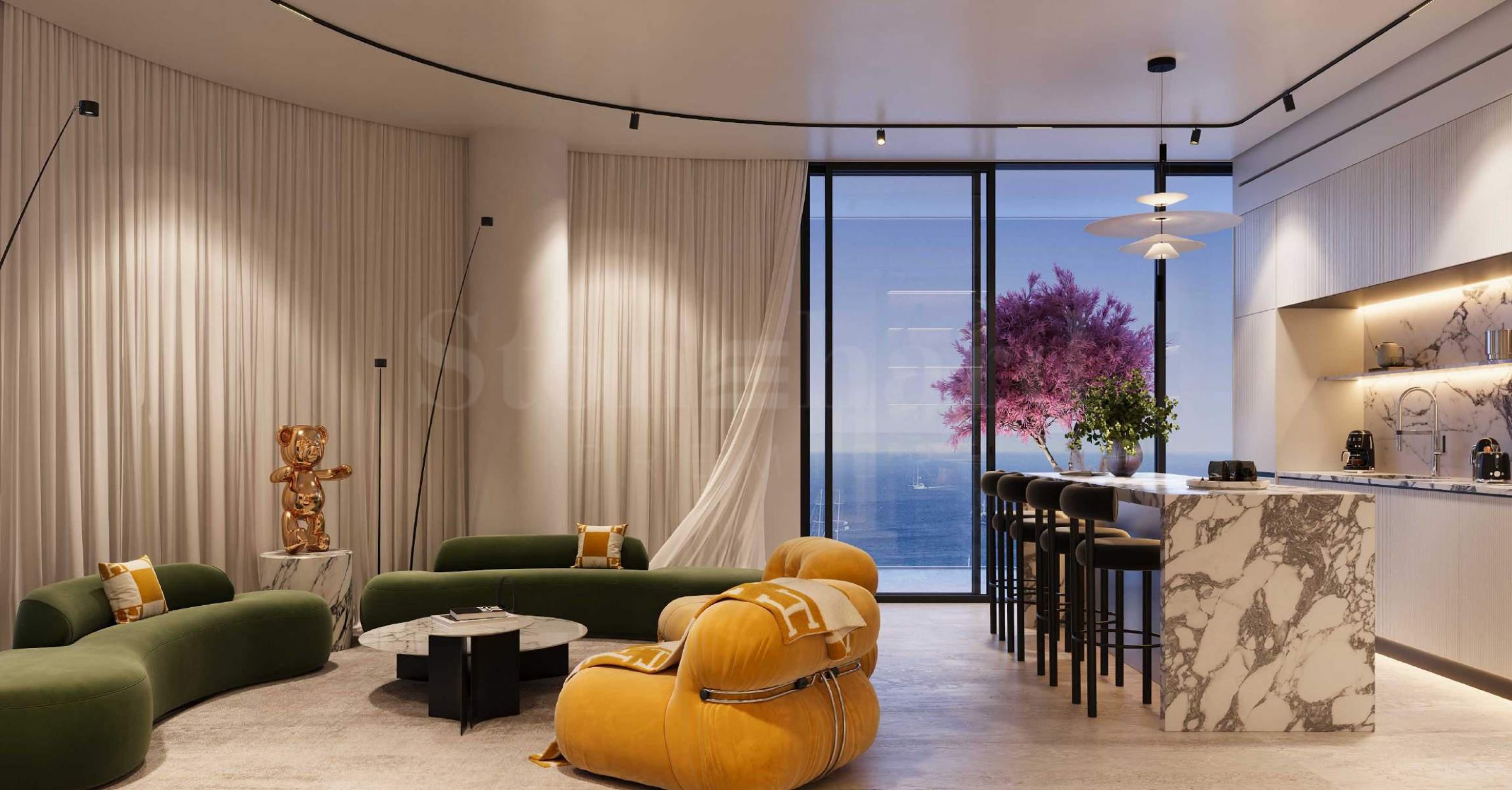 Ако бисмо морали да сумирамо суштину Виле Дел Брунело једном речју, то би несумњиво била пространост. Са површинама од 102 квадратна метра до импресивних 1538 квадратних метара, ове резиденције су створене као позорнице на којима се одвија спектакл вашег живота. Високи плафони и прозори од пода до плафона откривају панорамске погледе који обавијају својом лепотом – јутра почињу мирним ритмом морских таласа, а вечери се завршавају шармом блиставе градске силуете. Колекција укључује двособне, трособне, петособне и вишесобне станове на једном или два нивоа, при чему су одабране резиденције обогаћене одвојеним собама за лично особље – префињени детаљ који употпуњује осећај апсолутног луксуза.