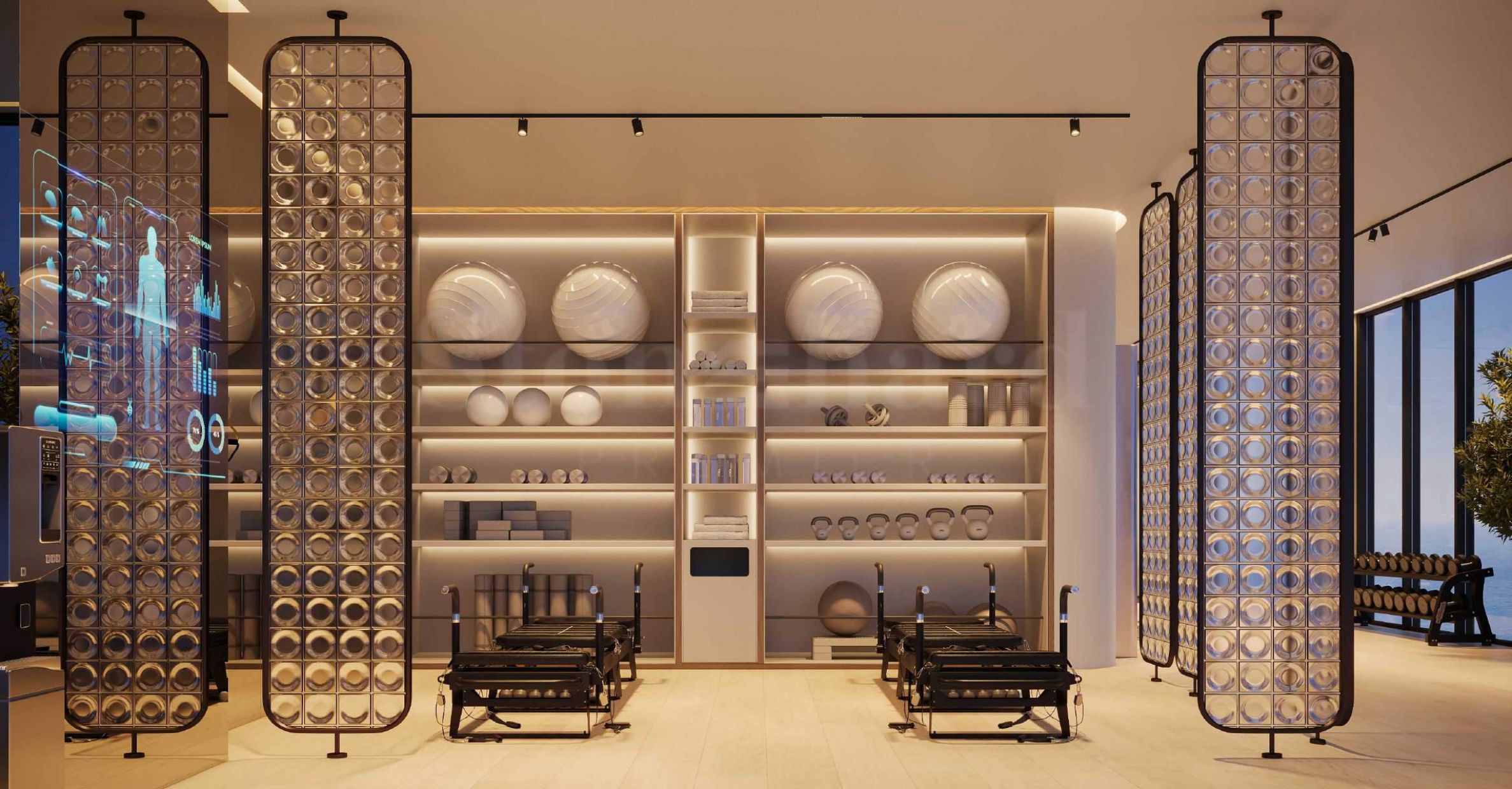 Зграда такође садржи потпуно опремљену теретану са врхунском опремом, као и просторе за пилатес - омиљену методу тренинга са доказаним резултатима међу женама. Планиране су и соба за масажу и сауна - савршени завршеци за право СПА искуство без потребе да напуштате удобност свог дома.