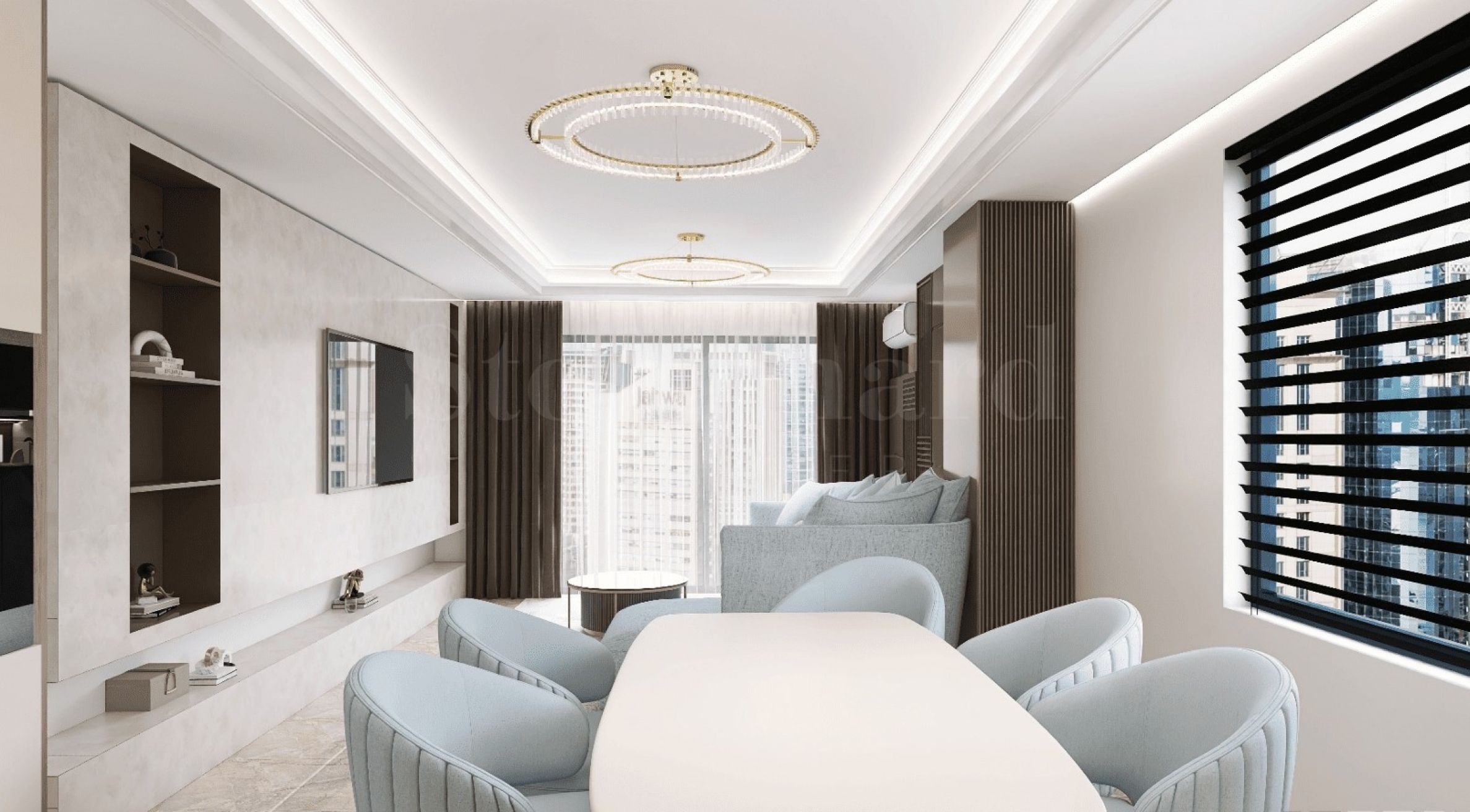 Стан се нуди у складу са бугарским грађанским закоником, са комплетним уређењем ентеријера укљученим у цену.