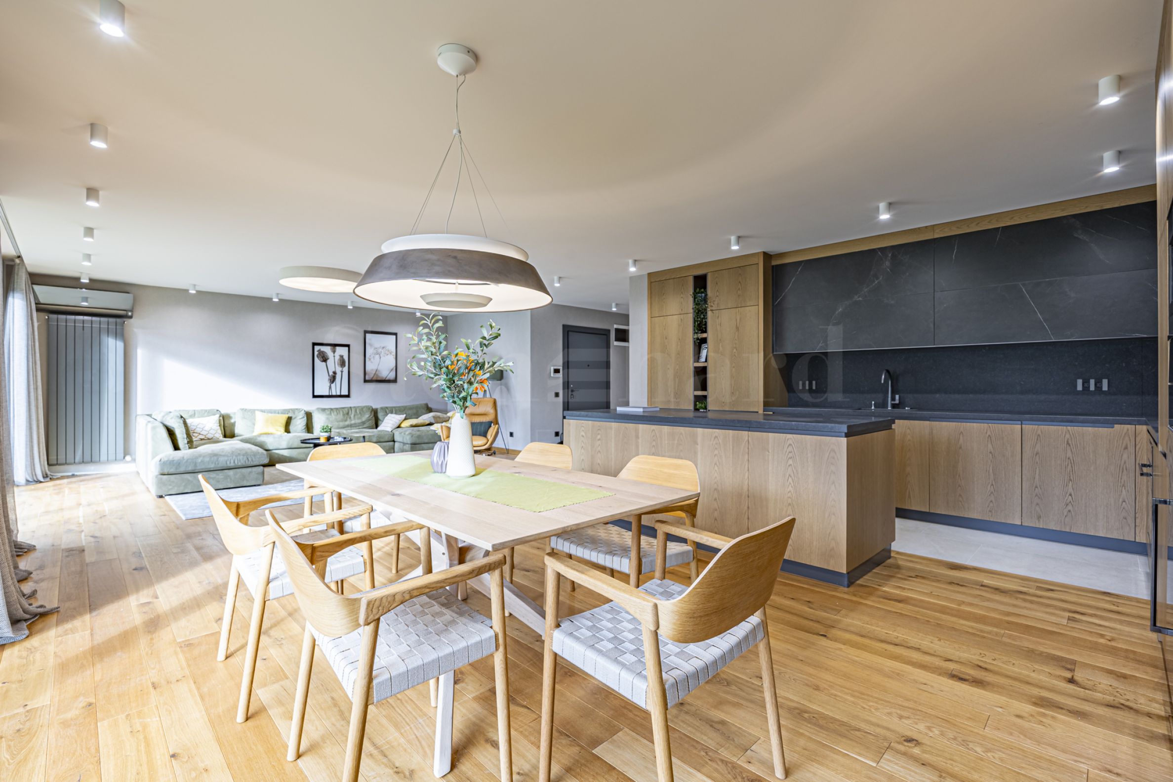 • super prostran i svetao dnevni boravak sa kuhinjskim blokom i trpezarijom;