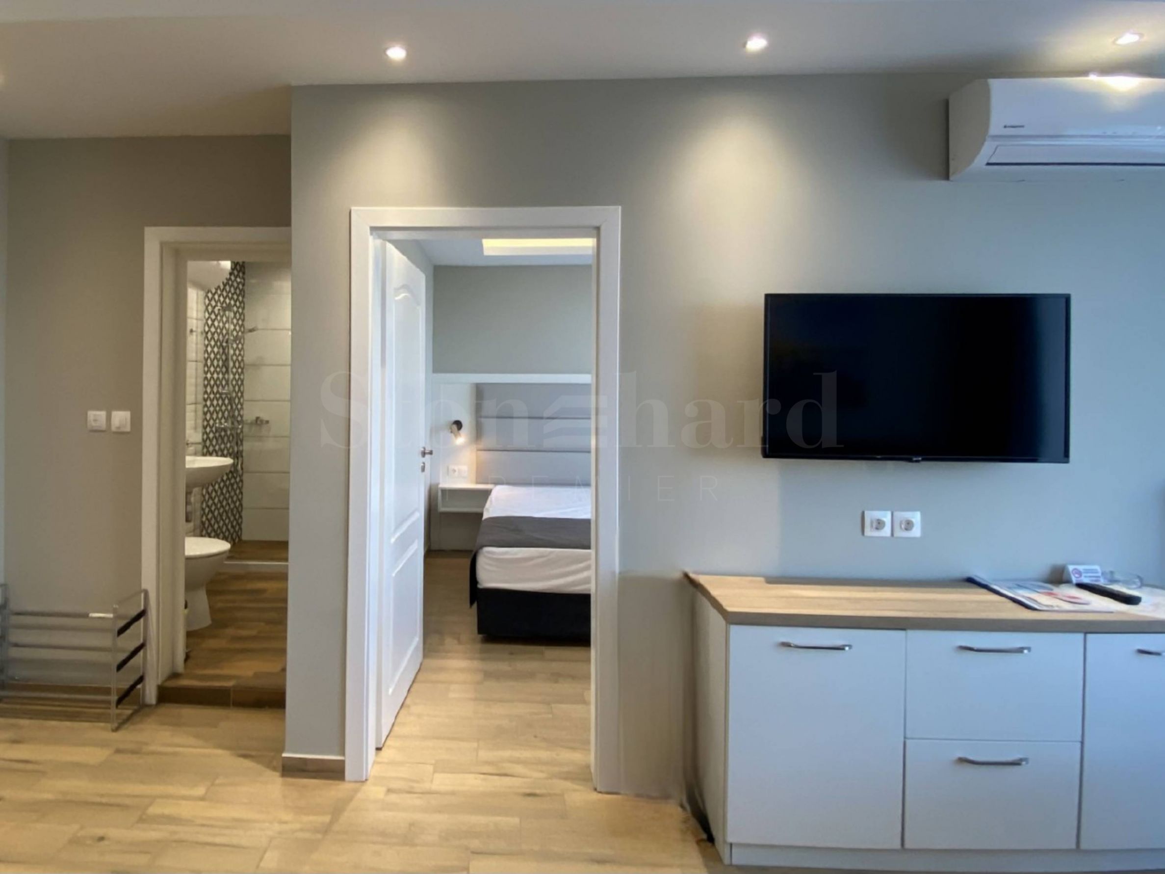 • zidovi u apartmanima i zajedničkim prostorijama - malter i glatka glet masa ili gips-karton, ofarbani u boji lateksa;