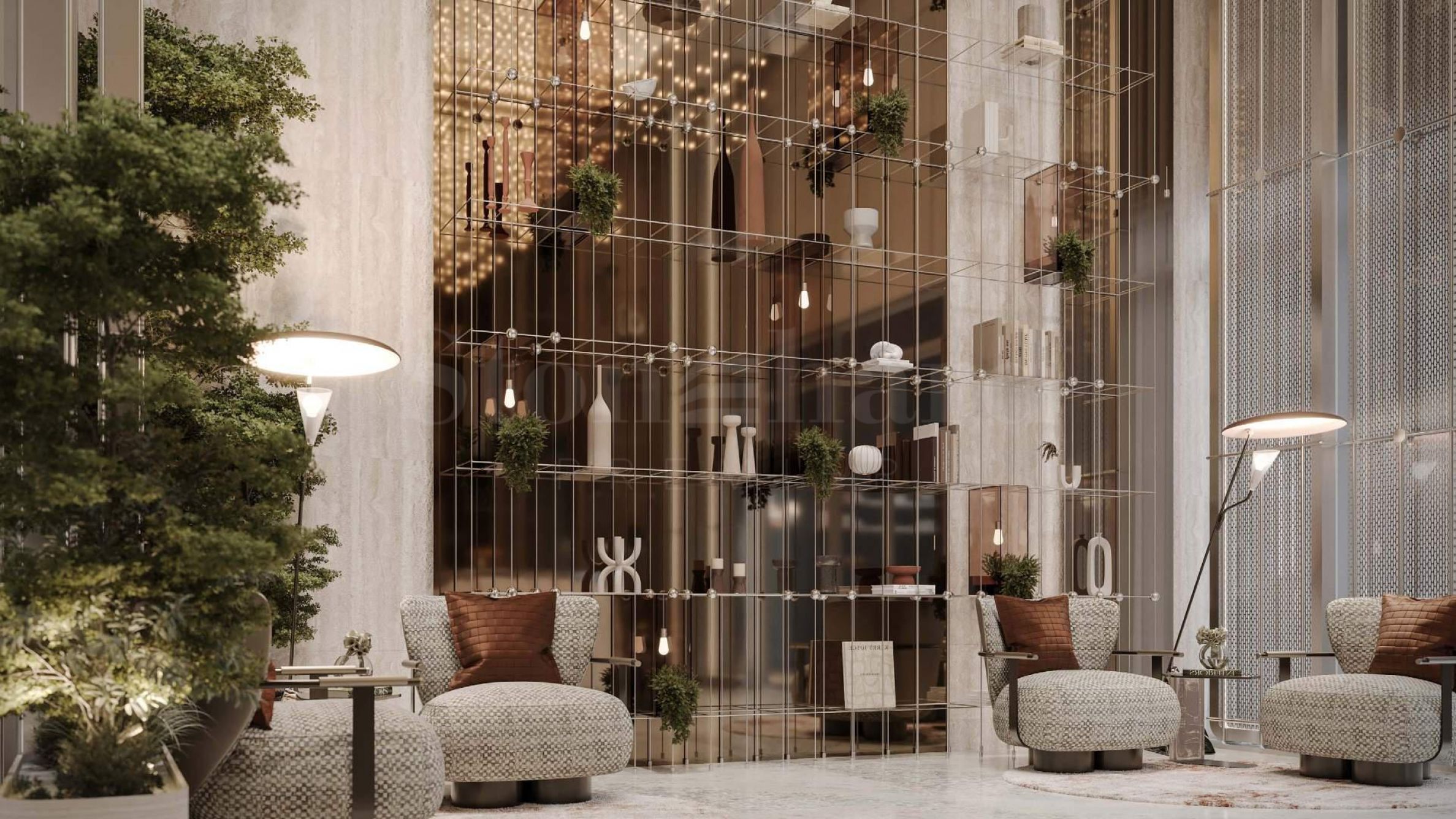 Fojе dočekuje stanare sa osećajem prostranosti i svežine, stilizovanim zonama za odmor i mermernim akcentima na zidovima koji dodaju fini luksuz i moderan izgled. Prostor je dizajniran kao prirodni nastavak doma – mesto za susrete, kratki odmor ili poslovni razgovor u sofisticiranoj atmosferi.