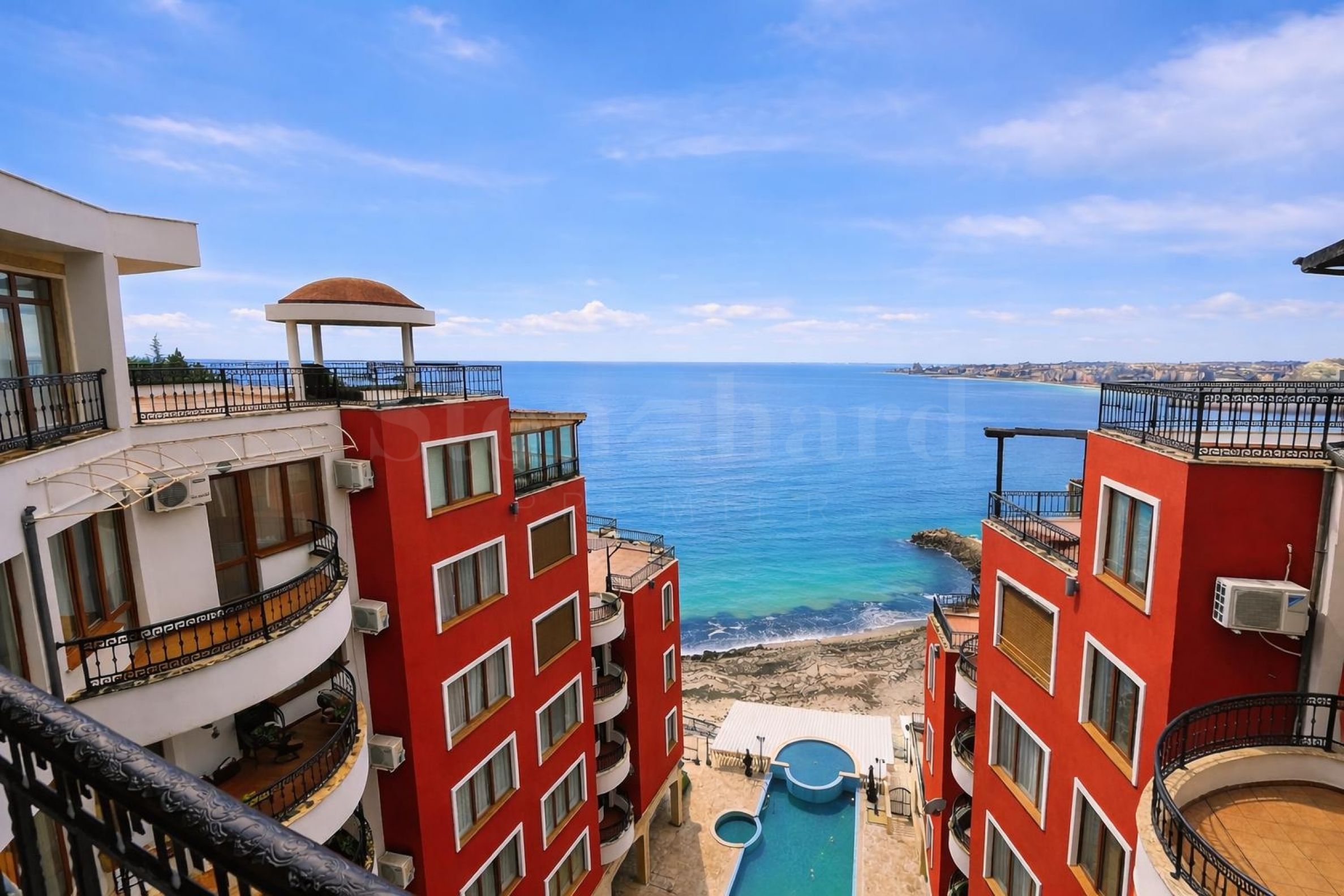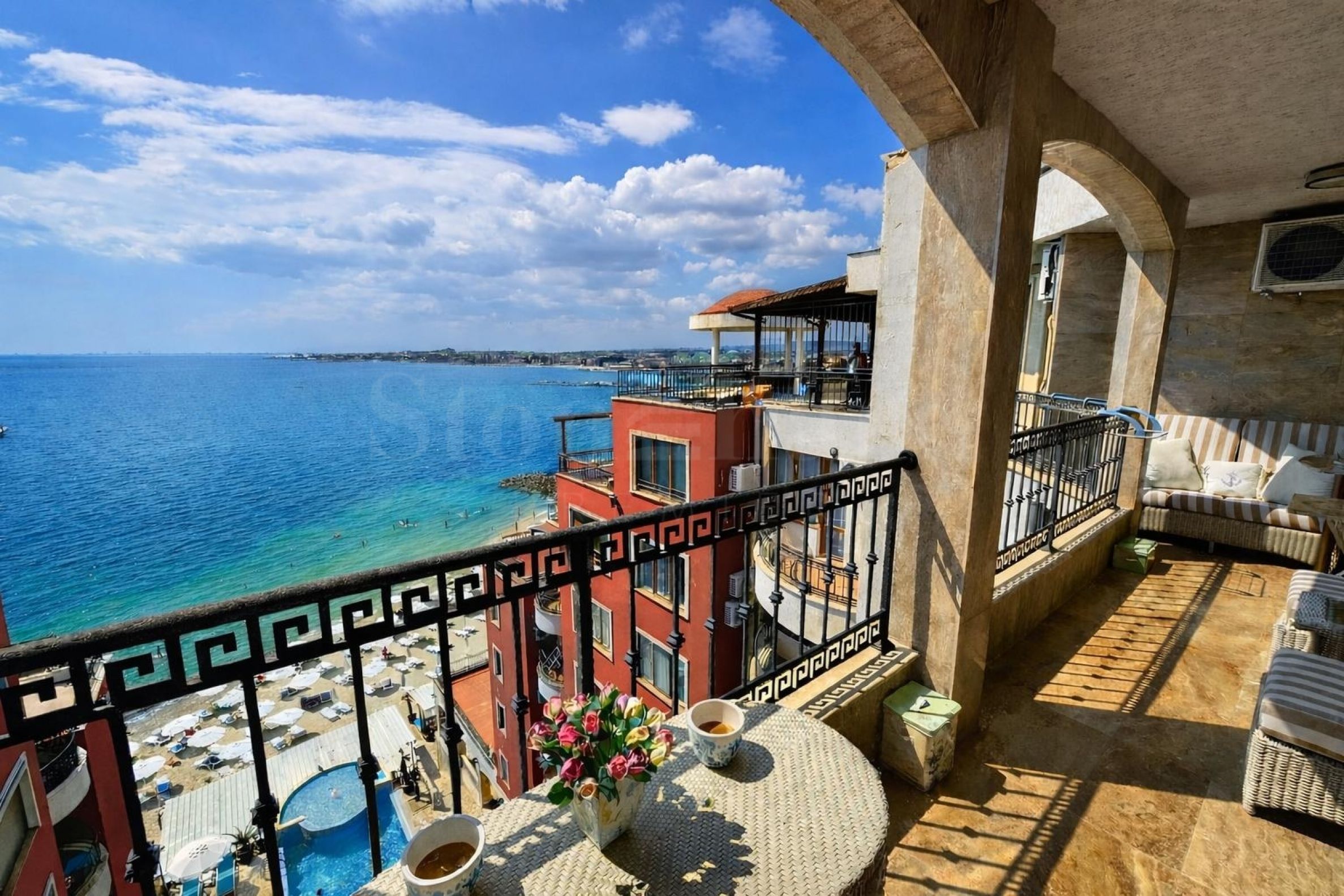 Panoramski penthaus sa frontalnim pogledom na more na prvoj liniji u Nesebar
