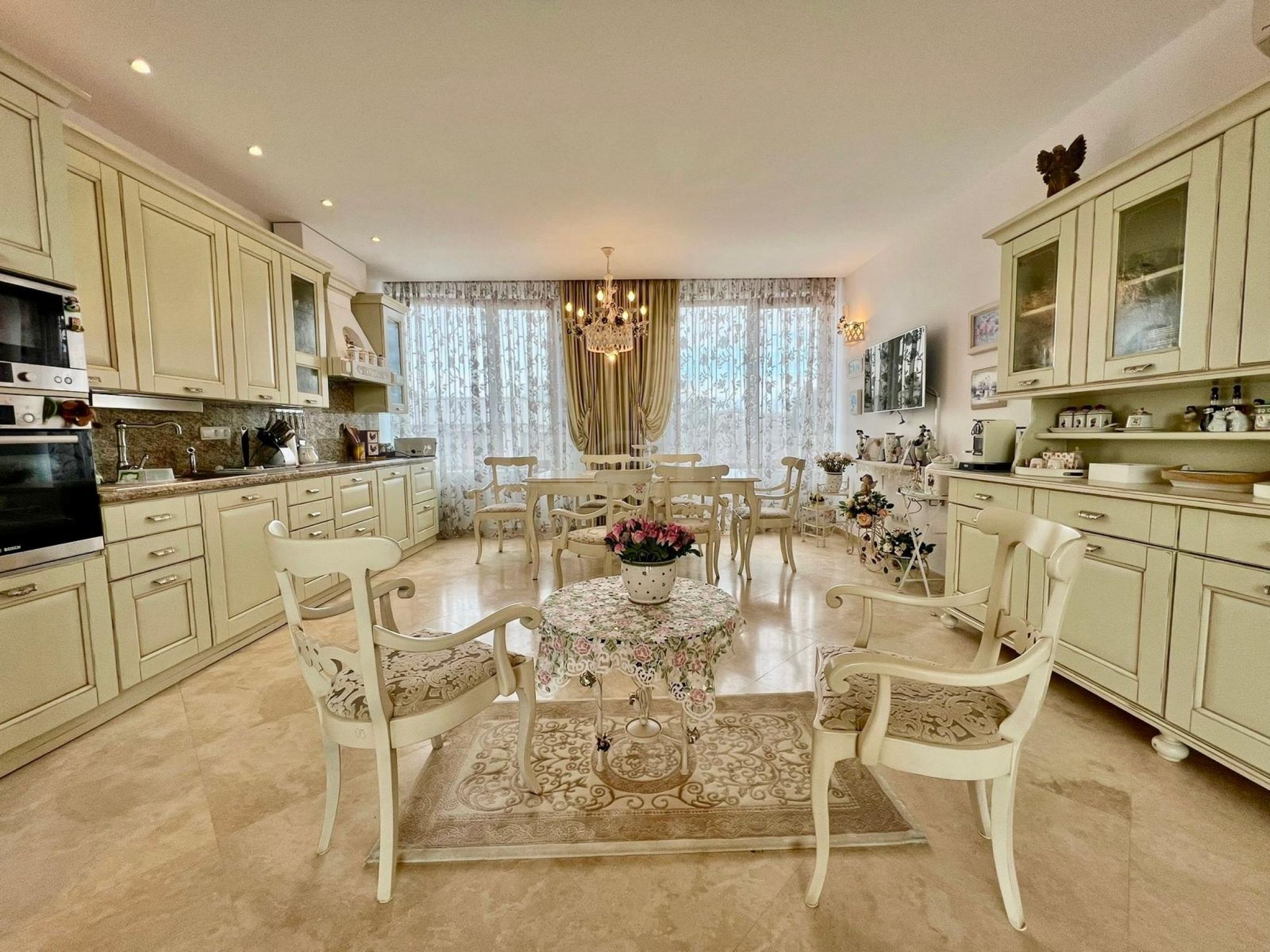 • dnevni boravak, trpezarija sa kuhinjskim blokom;
