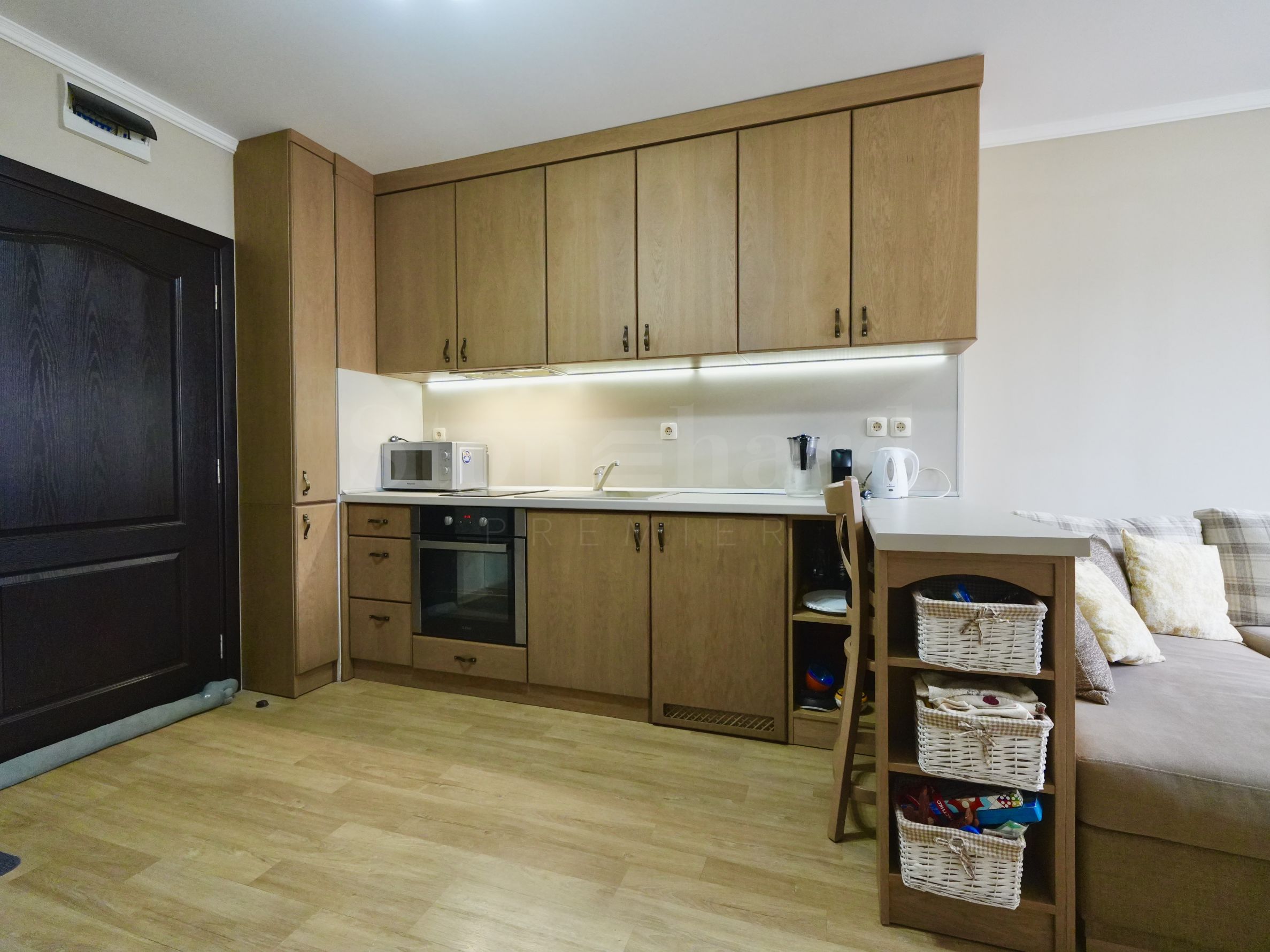 Svetao i udoban dnevni boravak sa ugaonom sofom, klub stolom i televizorom, sa izlazom na balkon, potpuno opremljena moderna kuhinja, komforna samostalna spavaća soba sa garderoberom i televizorom, kao i stilska kupatilo sa tuš kabinom i toaletom.