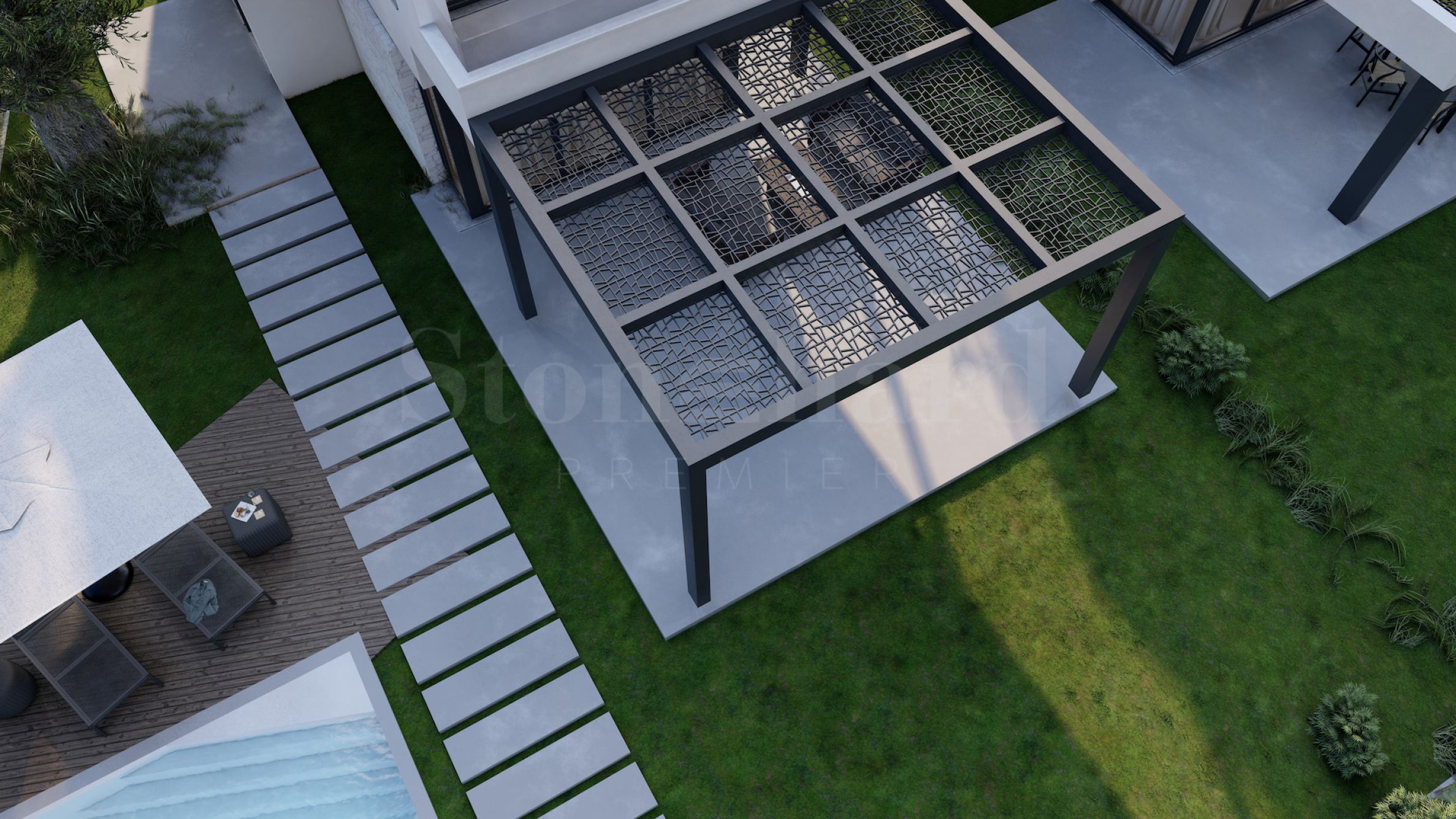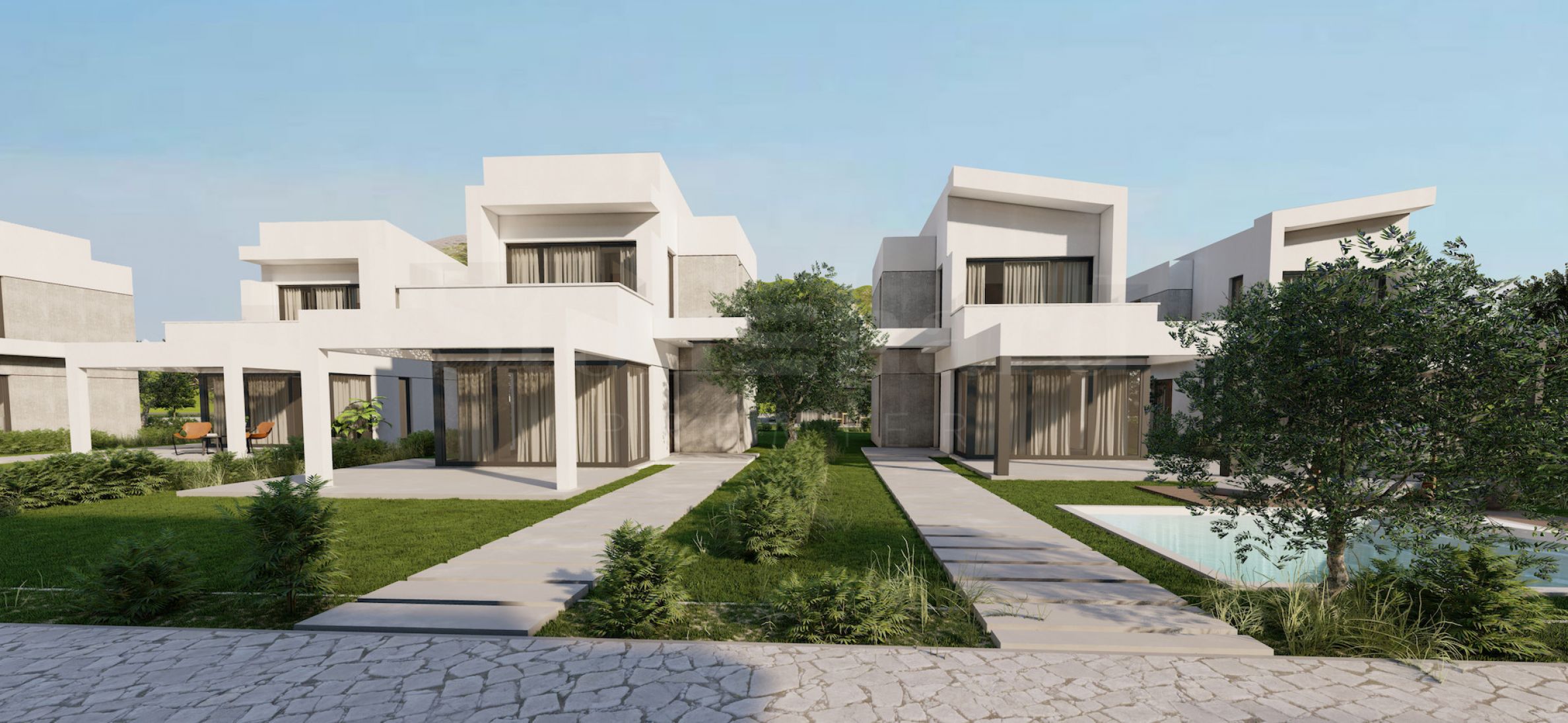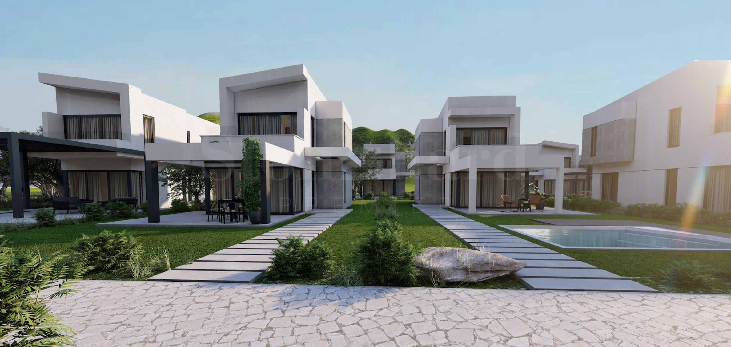 Kompleks se sastoji od 20 samostalnih vila na 2 nivoa sa površinama od 85.93 m² do 121.17 m². Fasada je pažljivo projektovana, sa pravim linijama i dekorativnim elementima, dajući modernu i u isto vreme bezvremensku viziju celom kompleksu. Rasporedi uključuju prostrane i svetle dnevne sobe, dve ili tri spavaće sobe i tri kupatila, garantujući potrebni mir i privatnost svim stanarima. Svi stanovi se izdaju završeni "ključ u ruke", sa postavljenim ulaznim i unutrašnjim vratima, podnim oblogama, osvetljenjem, opremljenim kuhinjama i opremljenim kupatilima. Kao dodatak, investitori nude mogućnost dodavanja privatnog spoljnog bazena.