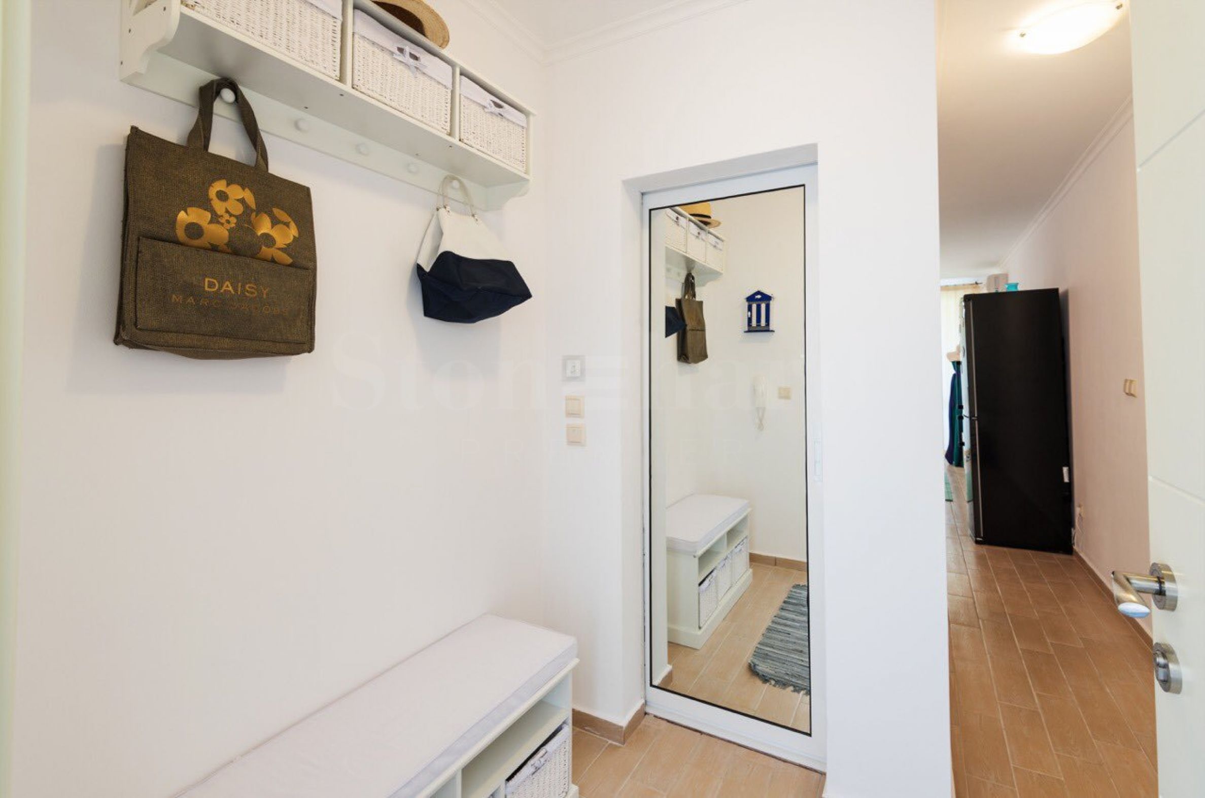 Stan se nalazi na prizemlju i sastoji se od dve udobne spavaće sobe, prostranog i svetlog dnevnog boravka sa kuhinjom i trpezarijskim stolom, hodnika, dve kupatila sa tuš kabinama i toaletima, kao i dva balkona sa direktnim pristupom bogato uređenom dvorištu (jedan od balkona je ka dnevnoj sobi, drugi – ka jednoj od spavaćih soba).