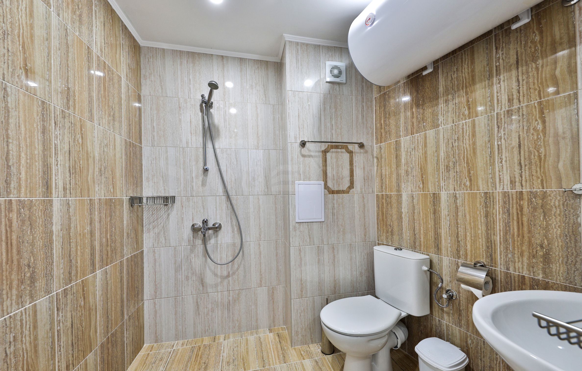 опремљено купатило са фајансом и додацима.