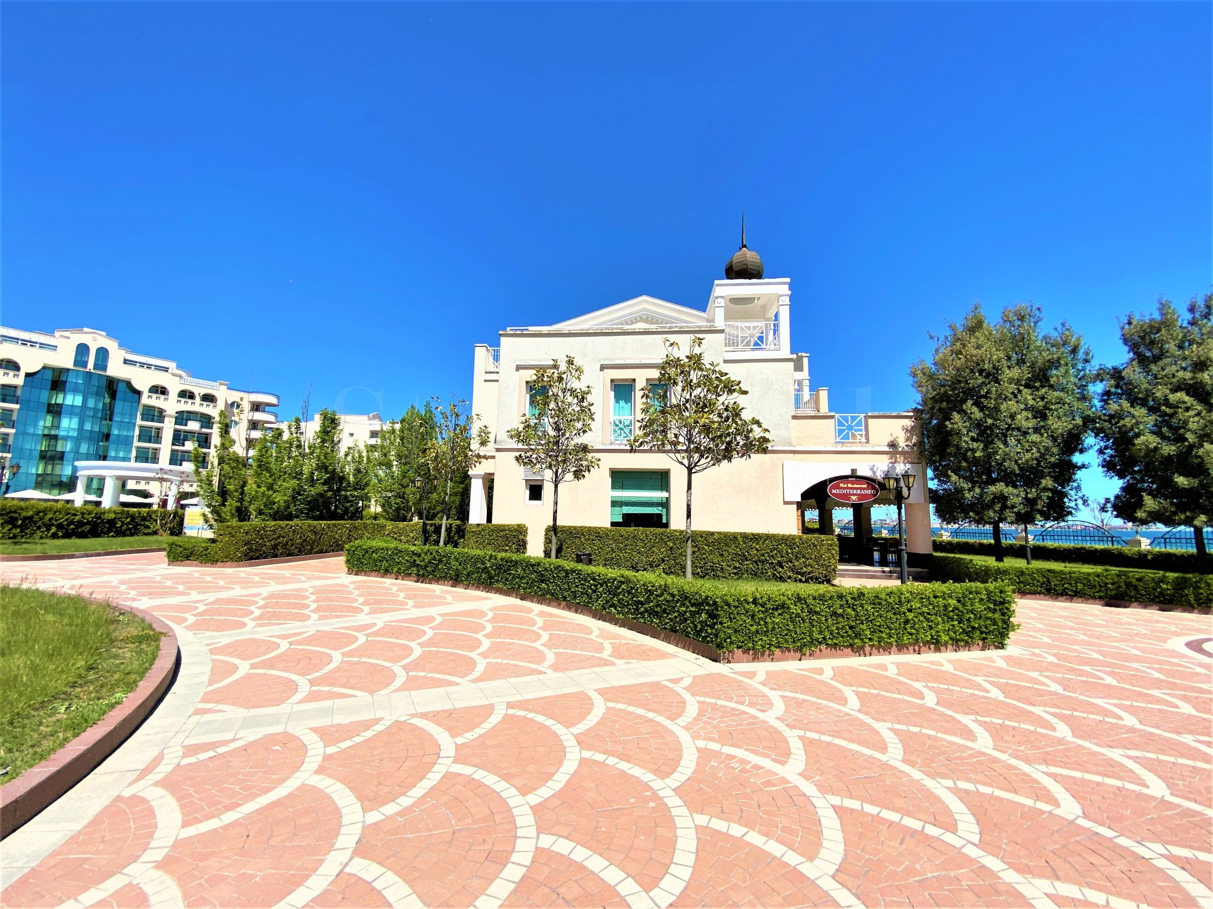 Imot je površine 88 kvm i nalazi se na 8. spratu u najvećoj i najluksuznijoj zgradi u kompleksu. Sa terase se pružaju izvanredni pogledi na more, plažu i vodene atrakcije kompleksa.