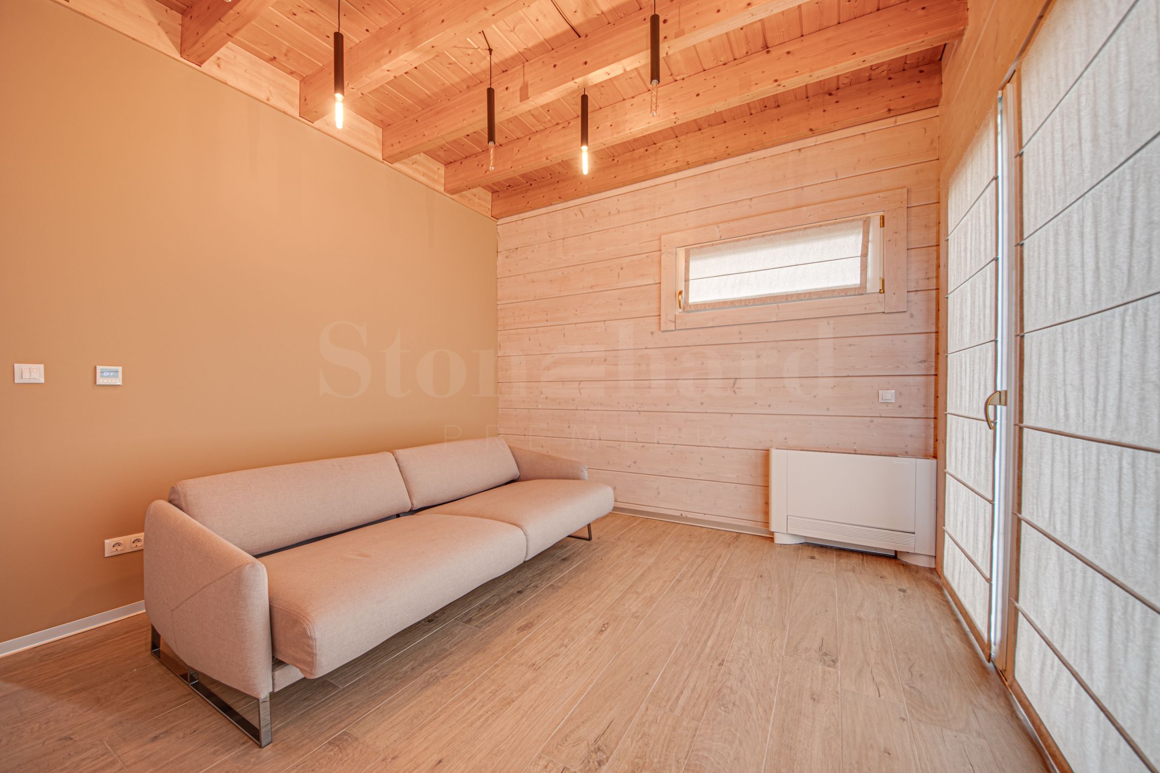 први спрат: улазни хол, пространа кухиња са трпезаријом, дневна соба, спаваћа соба, купатило са тоалетом, веранда са погледом на планину Витоша;
