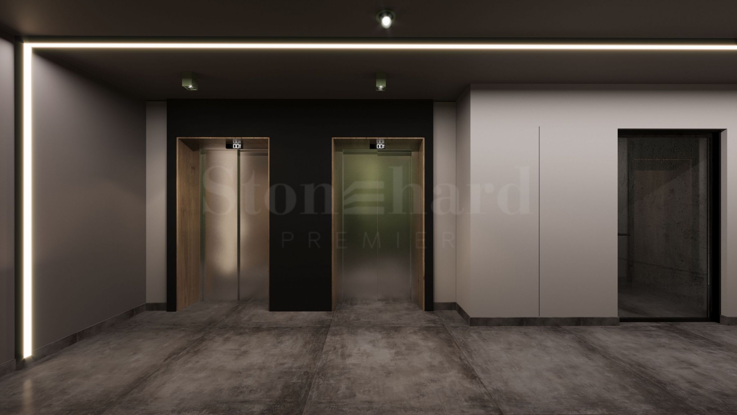• Foajei i hodnici – pod - cementna glazura i obloga od granitogresa, zidovi - lamperija i obloge prema enterijerskom projektu, spušteni plafoni od gips-kartona, ofarbani lateksom preko gipsane žbuke, sa dizajnerskim osvetljenjem po projektu.