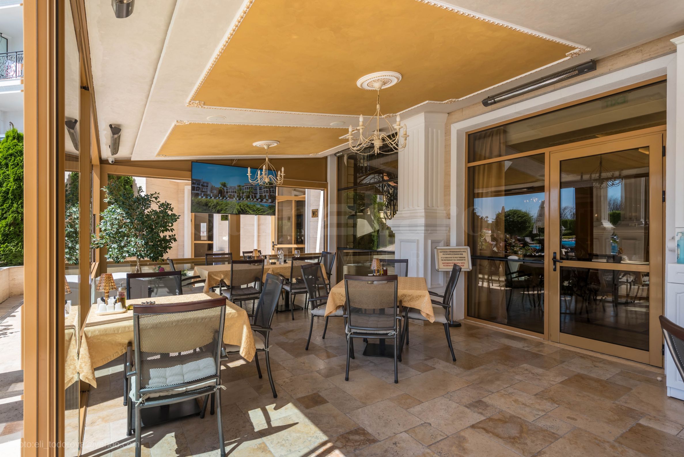 лепо уређено двориште са пријатним осветљењем. Комплекс је специјализован за медицински туризам и ради током целе године, без прекида током зимске сезоне. Поред медицинских процедура, можете уживати у укусној храни у ресторану и бистроу, који нуде медитеранску и традиционалну бугарску кухињу.