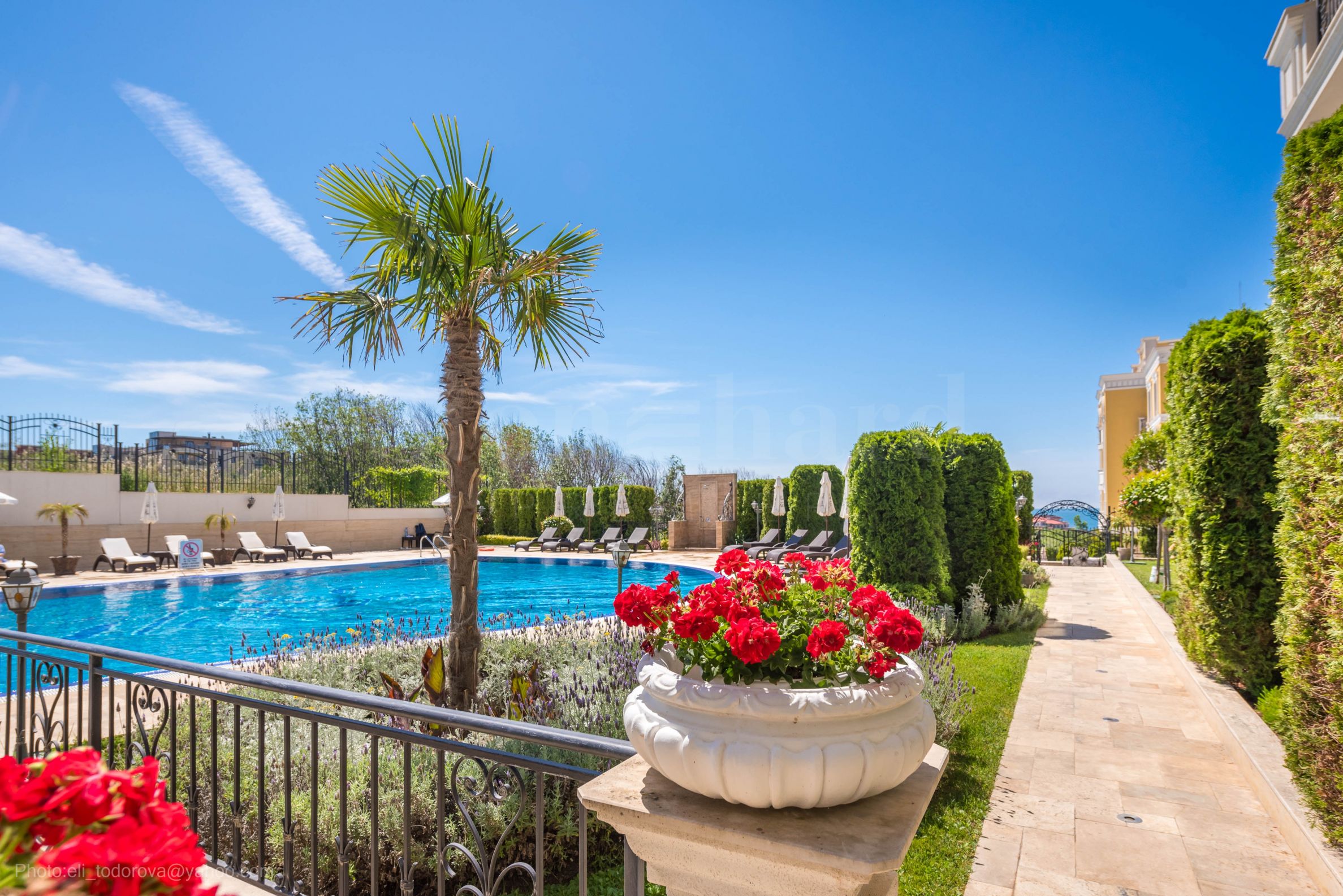 Два спољна базена су отворена током летњег периода од маја до септембра. За децу је изграђено модерно игралиште, а унутрашња територија комплекса је лепо одржавана и уређена, површине 6060 квадратних метара (зграда А 4330 квадратних метара + зграда Б 1730 квадратних метара). Обе зграде комплекса имају подземну етажу са паркинг местима и подрумима, а у већој згради се налази рецепција. Грејање је обезбеђено топлотним пумпама и клима уређајима, што пружа пријатан топао амбијент чак и током хладних зимских месеци.