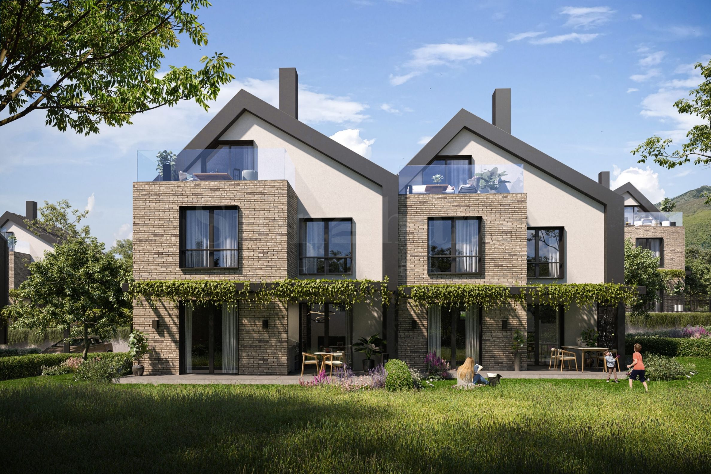 Нова кућа са двориштем и погледом на Витошу у затвореном комплексу