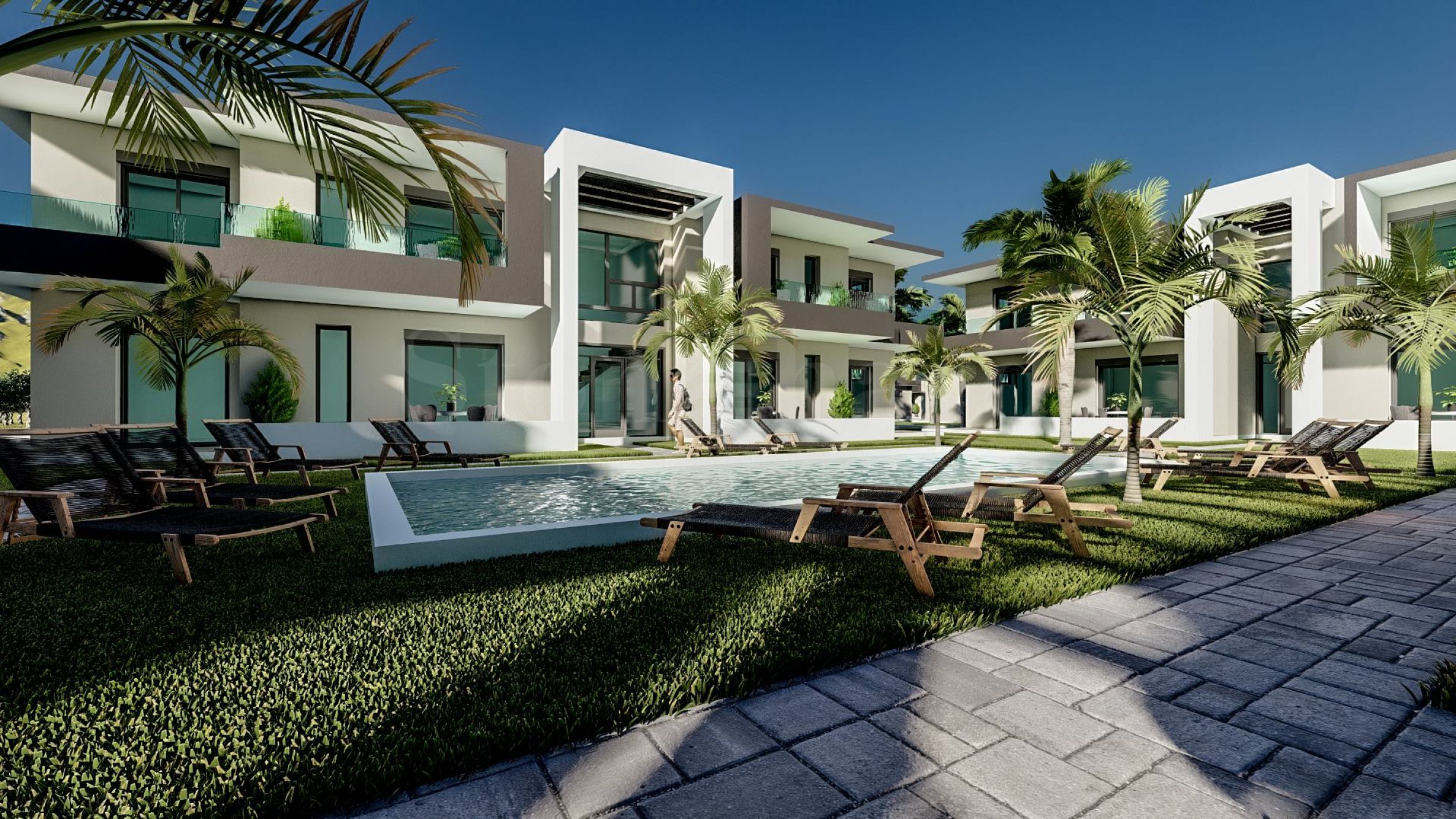 Комплекс се састоји од 15 зграда и укупно 54 апартмана, а сви су пројектовани имајући у виду удобност и одрживост. У њиховој изградњи коришћени су висококвалитетни материјали. Спољашњост зграда је у складу са природним пејзажом и архитектуром у том подручју, савршено се усклађујући. Да би се осигурао осећај сигурности становника, комплекс се налази у ограђеном простору и има сопствени паркинг. Постоји и неколико заједничких базена са просторима за опуштање, идеалних за опуштање, сусрете са пријатељима и забаву на води.